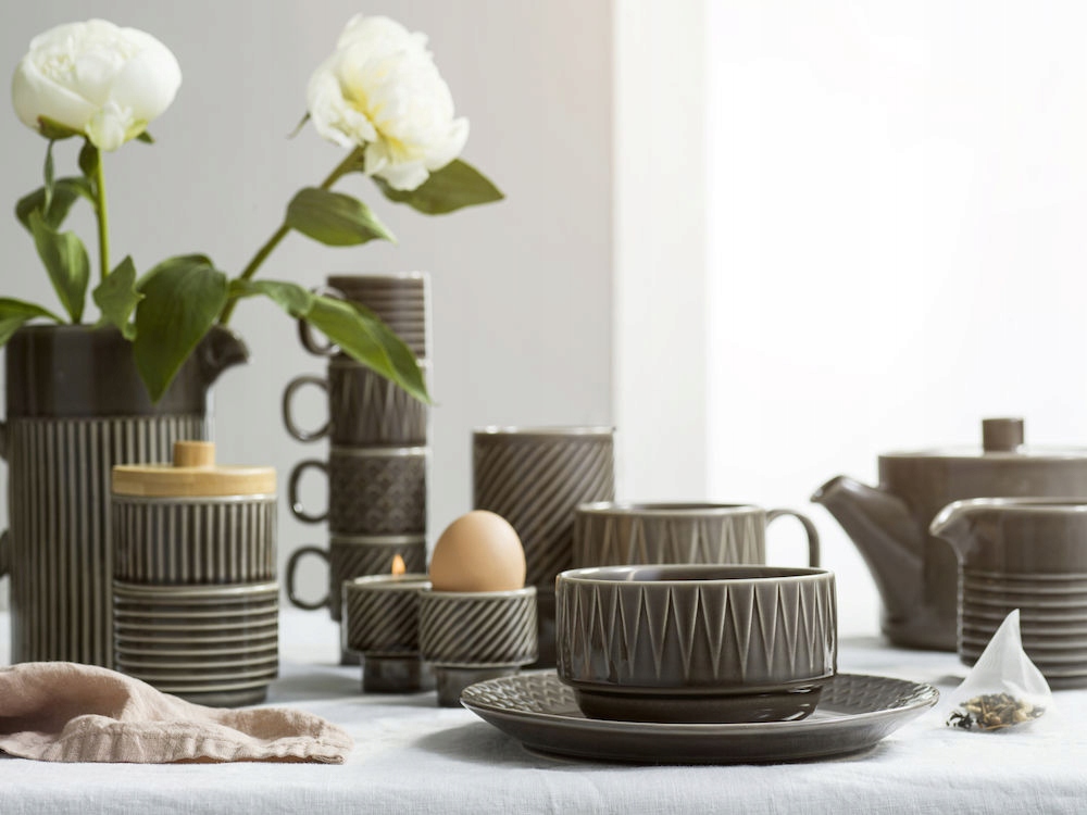 В комплект включает четыре керамические чашки Elgan для эспрессо в сером. Каждая чашка была украшена различным выпуклым рисунком. 4-пакетные чашки на эспрессо ссылаются на 70-е годы прошлого века. Чашки будут работать в повседневном использовании. Их можно вымыть в посудомоечной машине и нагревать в микроволновой печи. Кроме того, чашки могут быть установлены стабильными с другим, когда мы их не используем.