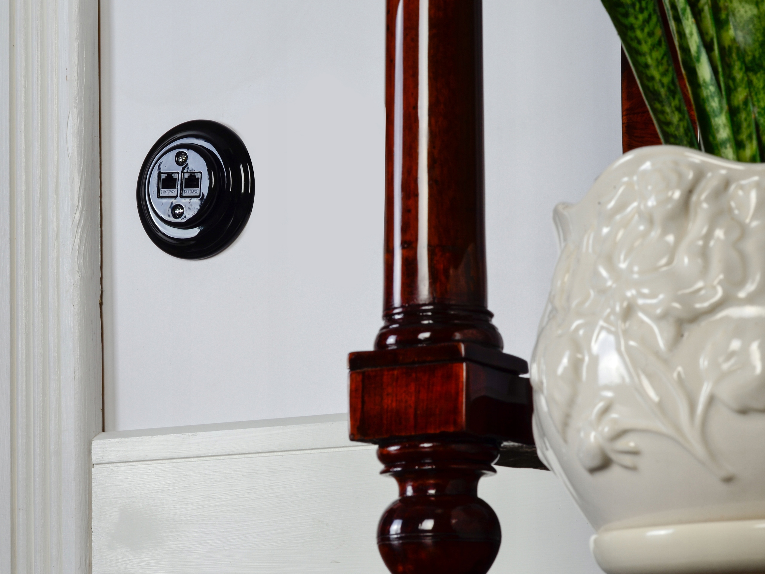 РЕТРО ЛОФТ КЕРАМІЧНА РОЗЕТКА 2xRJ45 FLUSH BLACK