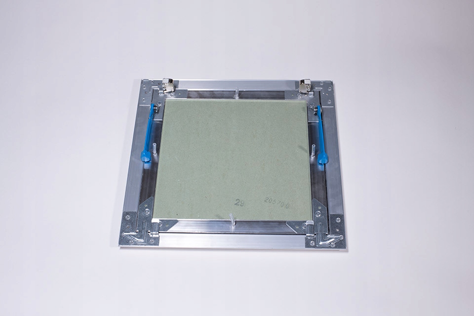 Сплошной смотровой люк, изготовленный из алюминиевой рамы и крышки, заполненной гипсокартоном с пропиткой. Люк предназначен для осмотра каркасных стен, монтажных стен, стен шахт и подвесных потолков с обшивкой гипсокартоном общей толщиной 2х12,5 мм. Облегчает доступ к скрытым установкам, счетчикам воды, газа, электроэнергии и т.д.