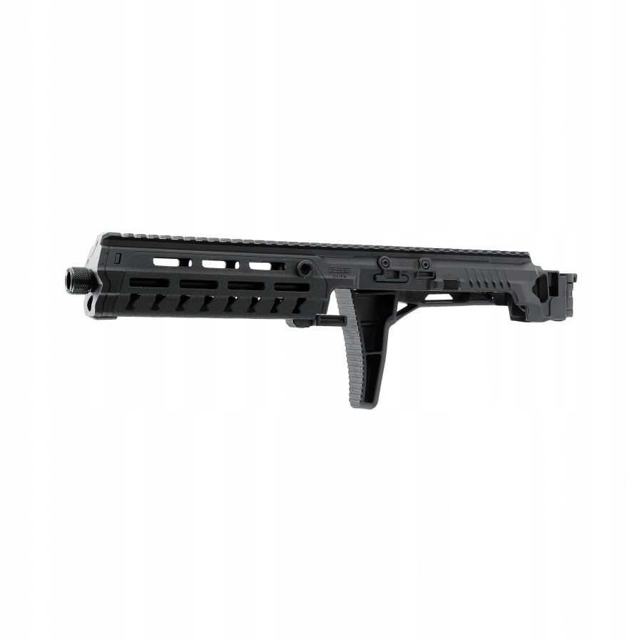 . Складной приклад позволяет нам стабилизировать положение револьвера , гарантируя увеличение точности выстрелов и ограничивая усталость во время длительного использования. Размещение портов QD на корпусе позволяет использовать тактические суспензии.
