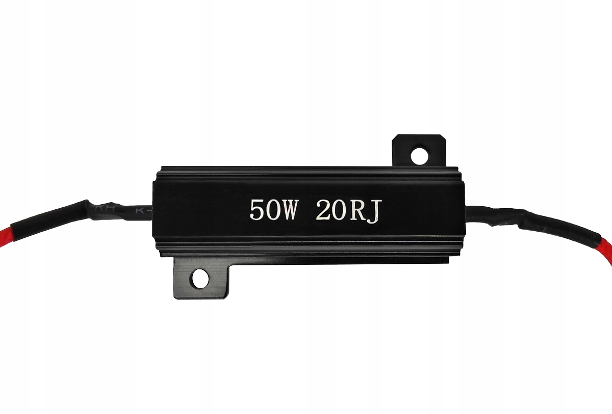 Резистор мощностью 50 Вт сопротивлением 20 Ом с теплоотводом, исключающий все проблемы, связанные с использованием светодиодных лампочек в автомобилях с системой CANBUS. Использование резистора часто необходимо даже при использовании ламп с маркировкой CANBUS в автомобилях, где система CAN особенно чувствительна – например, Audi A4 B7. Также необходимо использовать их в автомобилях группы VAG после 2009 года выпуска, Octavia 2 FL (>2009), Leon 2 (>2010), Golf6 и т.д.