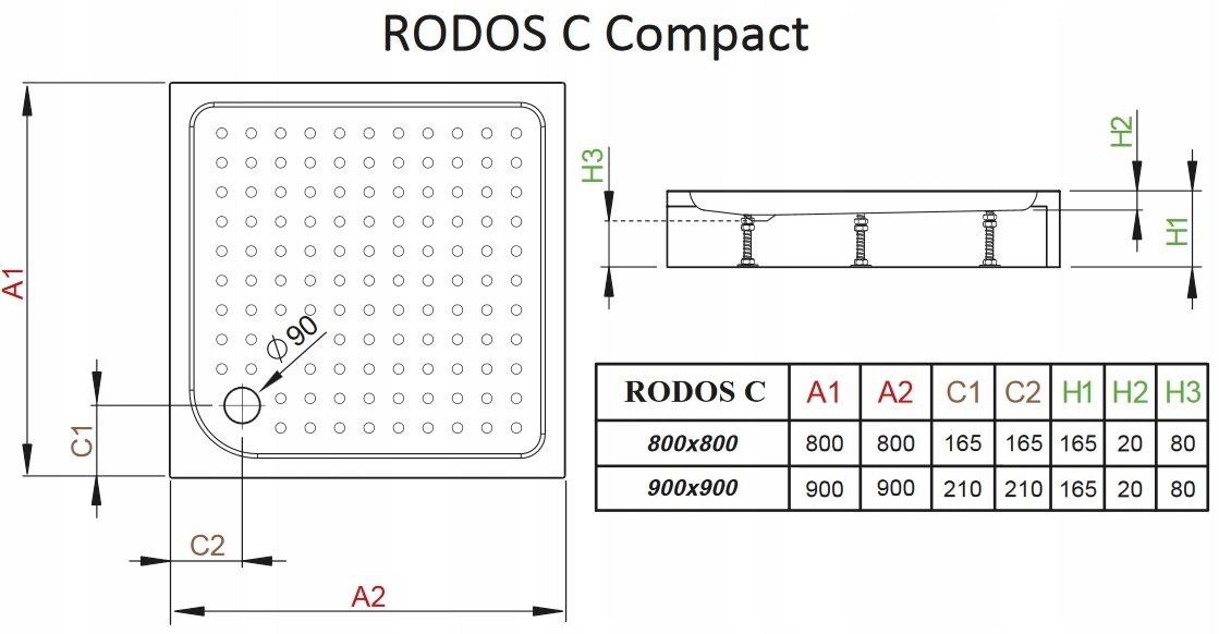 Rhodes C Compact 80x80 Radaway Square Shower Tray
