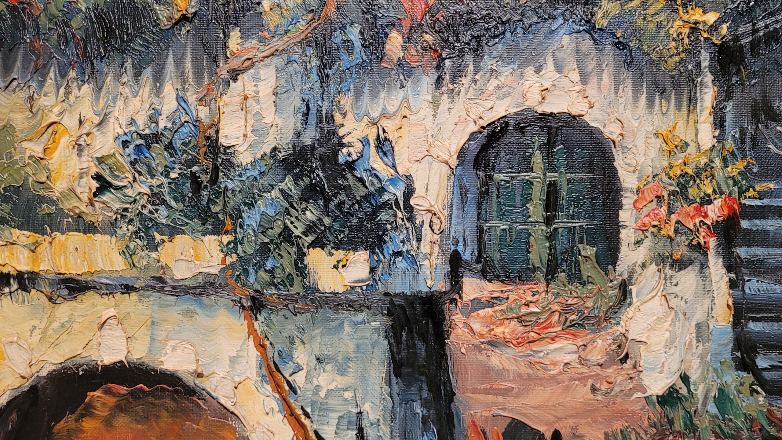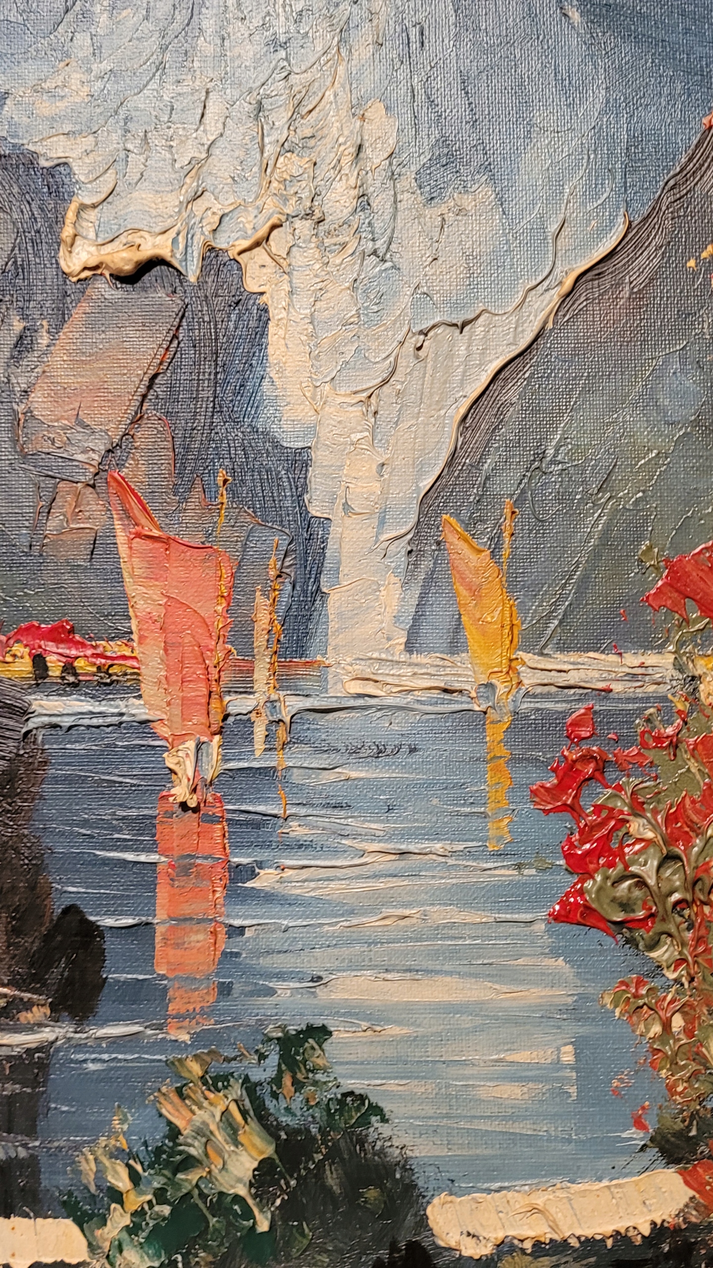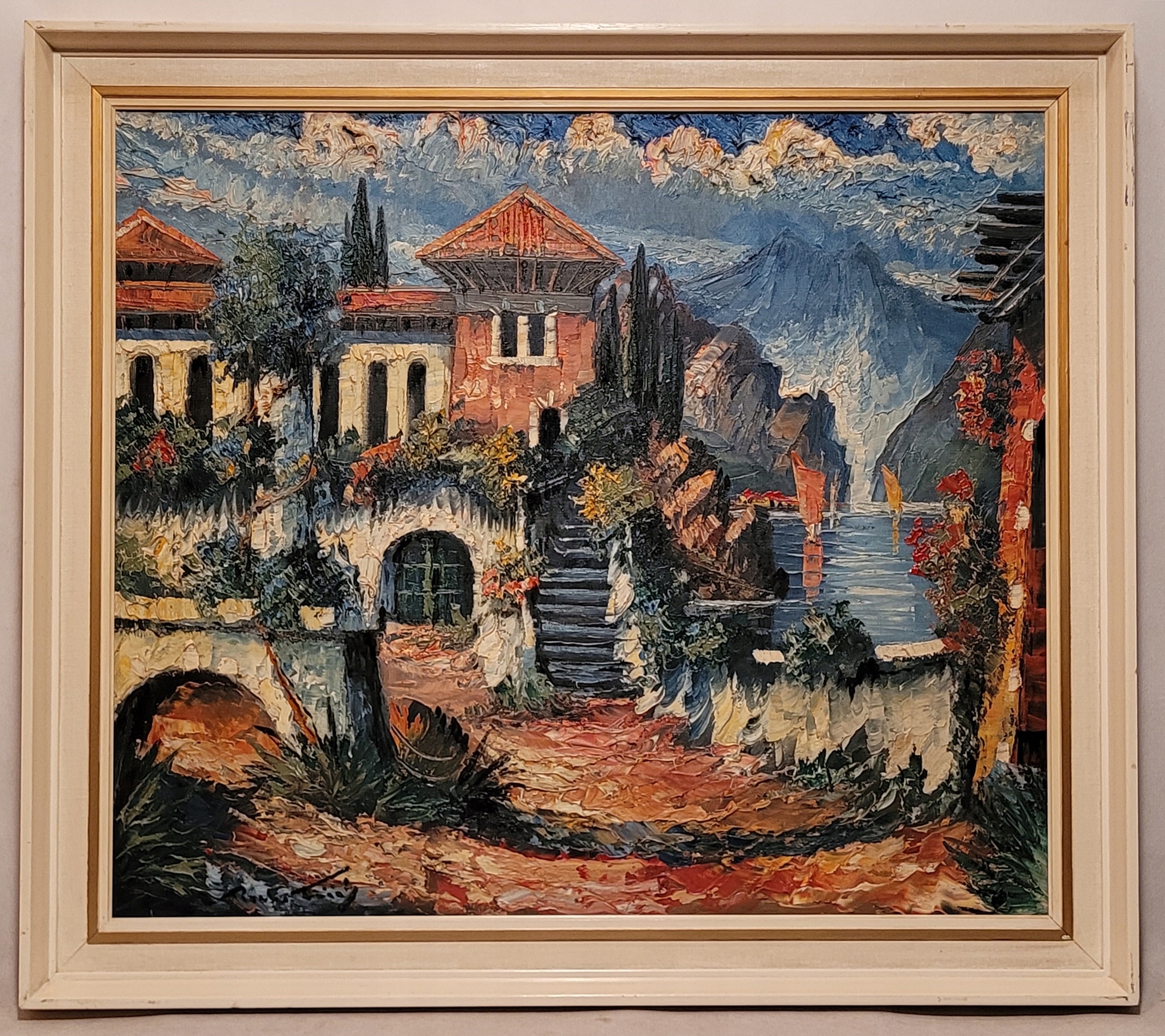 Rich Friis (1924 -) - «Пейзаж с заливом», красивая нефтяная картина.