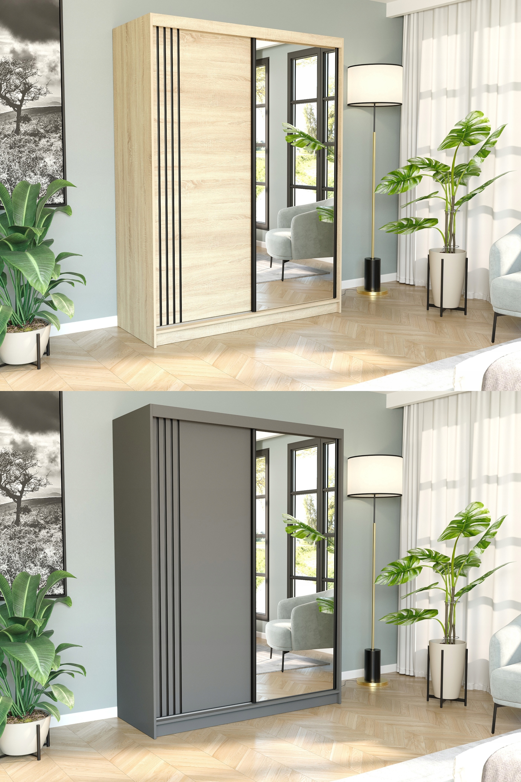 раздвижной гардероб 150 см Rivano V с зеркалом - современный и функциональный