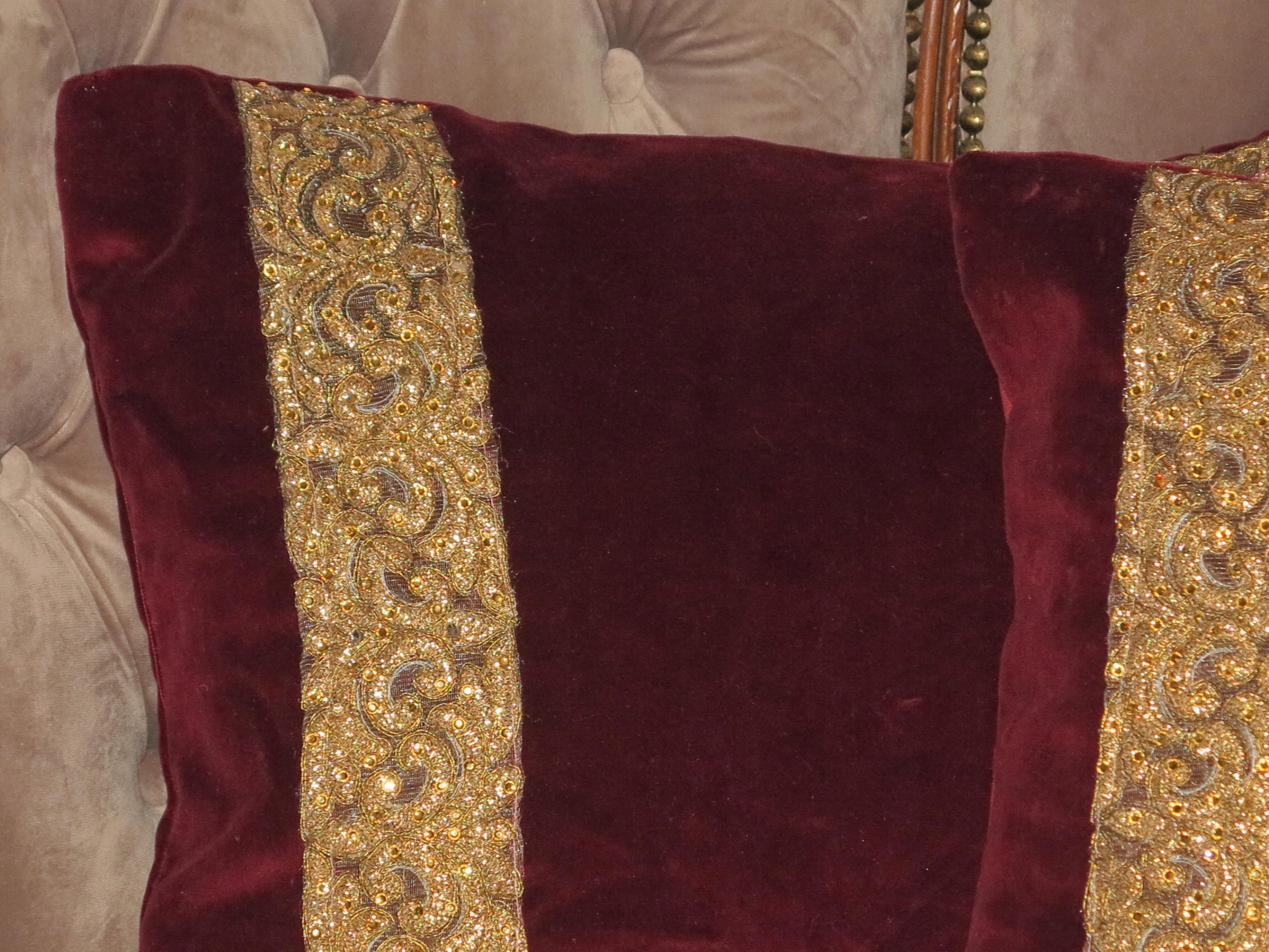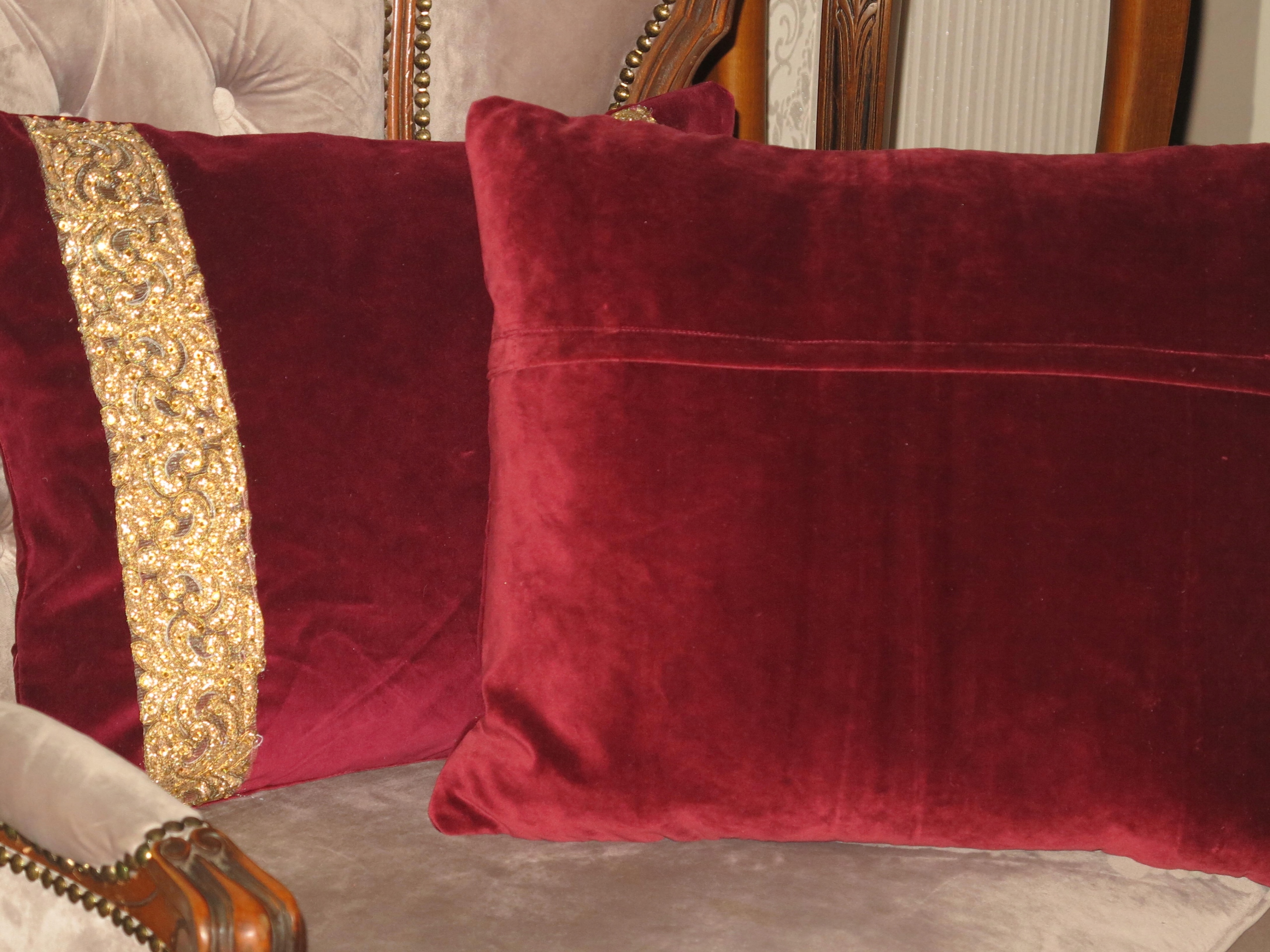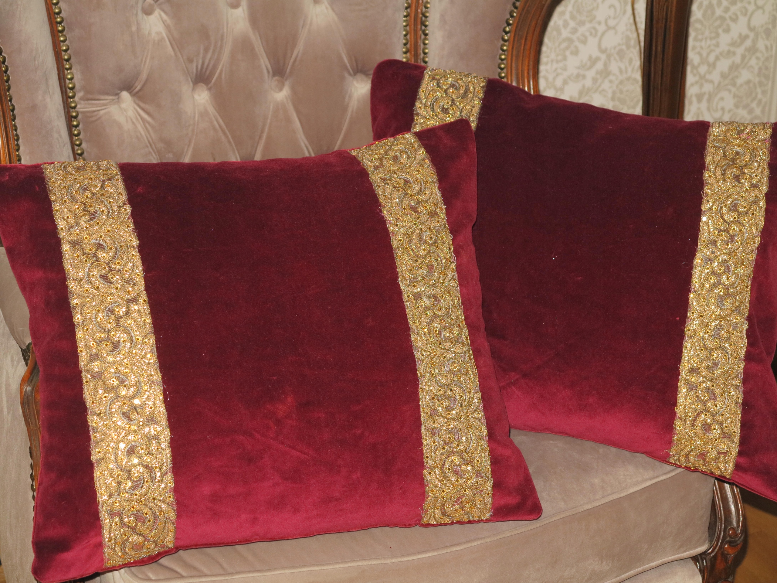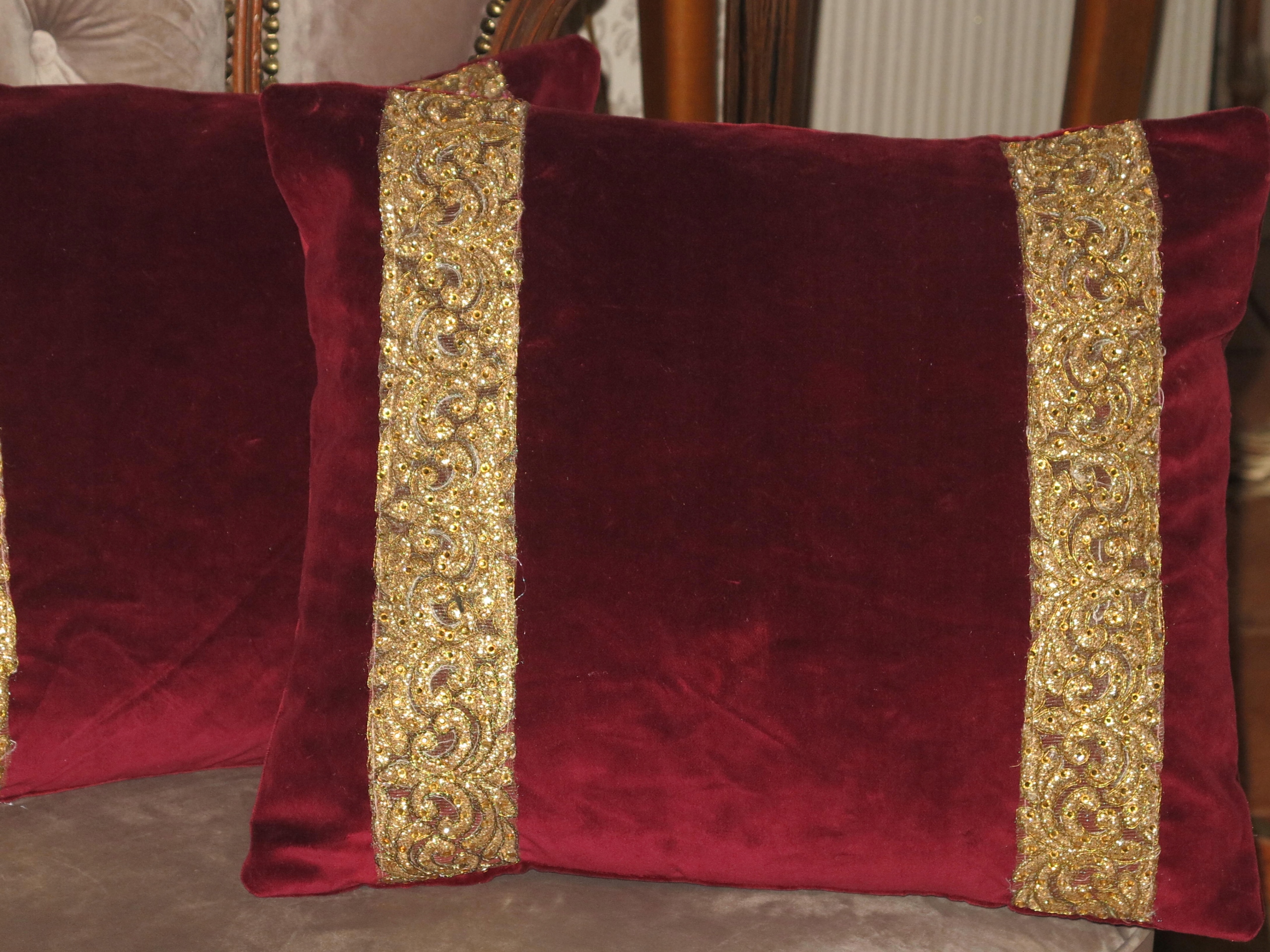 сложный, Стильный бархатный набор наволочек полностью из благородного , Толстый хлопковый бархат в бордовом, украшенный старого старого масштаба в старом Золото