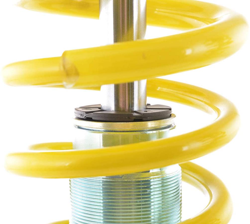 Койловеры FK имеют газовые амортизаторы с увеличенной силой демпфирования и укороченным рабочим ходом. Корпус из высококачественной, полностью оцинкованной стали обеспечивает длительный срок службы благодаря резьбе, регулируемой снаружи от умеренного до крайнего понижения в пределах проверенного диапазона регулировки. Диапазон регулировки зависит от автомобиля и находится в пределах 35-65 мм, естественно сертифицирован TUV. Подвеску можно быстро и легко отрегулировать с помощью прилагаемого крюкового ключа. Заниженные и более жесткие пружины придают автомобилю отличные ходовые качества за счет усиления жесткости подвески, что обеспечивает комфорт вождения и большую безопасность на поворотах. Пружины изготовлены из чрезвычайно прочной хромосиликоновой стали с последующим пластиковым покрытием. Дополнительно для них характерна возможность регулировки высоты передней и задней подвески. Установка койловерной подвески также улучшает внешний вид автомобиля, добавляя спортивный характер.