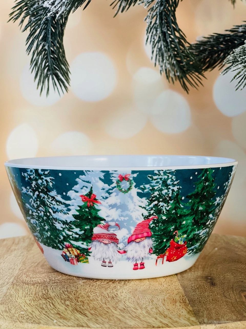 Создайте праздничное настроение на завтраке или обеденном столе, поставив веселые миски с рождественским узором.