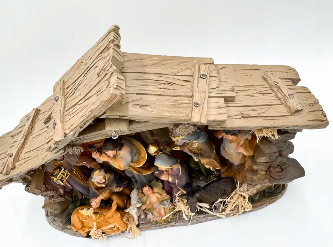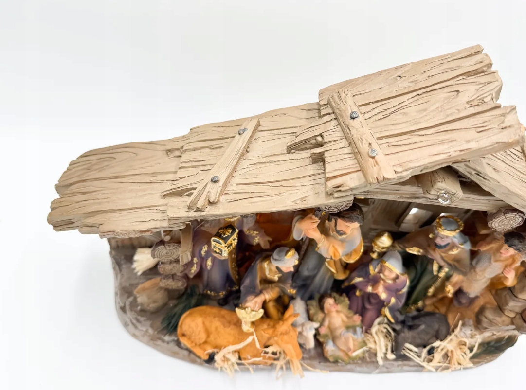 Каменная рождественская кроватка 38 см с освещением и фигурами стабильной