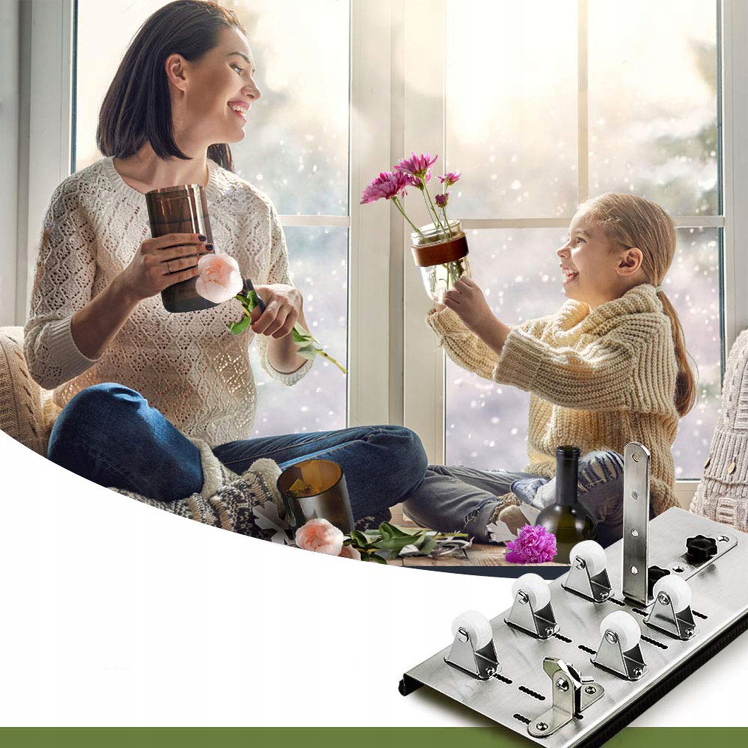 【Регулируемая и простая в использовании】: и банки, с самой простой системой регулировки; Строительство включает в себя 5 опорных колес, которые лучше стабилизируют бутылку, обеспечивая более точный разрез. Каждый раз. Затем стеклянная бутылка автоматически разделена. Гладкий нож не повредит вашу руку, в то же время он идеально разрезает бутылку.
