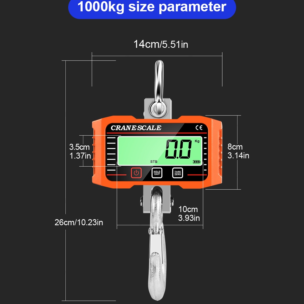 Прочная конструкция: Цифровой шкала крана состоит из высококачественного алюминия и обладает высокой стабильностью. Сплошной стальной крючок имеет высокую грузоподъемность. Сплошная конструкция корпуса делает вес, устойчивым к ударам и ударам, которые можно ожидать во время жесткой работы.