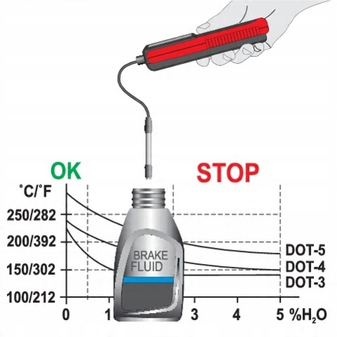 Автоматический тестер, Проверка содержания воды в тормозной жидкости - это универсальный продукт, , который можно использовать в случае широкого диапазона типов жидкости , и его можно использовать для тормозных жидкостей Dot 3/4/5 . В настоящее время DOT4+является наиболее распространенной оригинальной тормозной жидкостью для пассажирских автомобилей. Таким образом, тестер идеально подходит для тестирования содержания влаги в тормозных жидкостях грузовиков, мотоциклов и других машин.