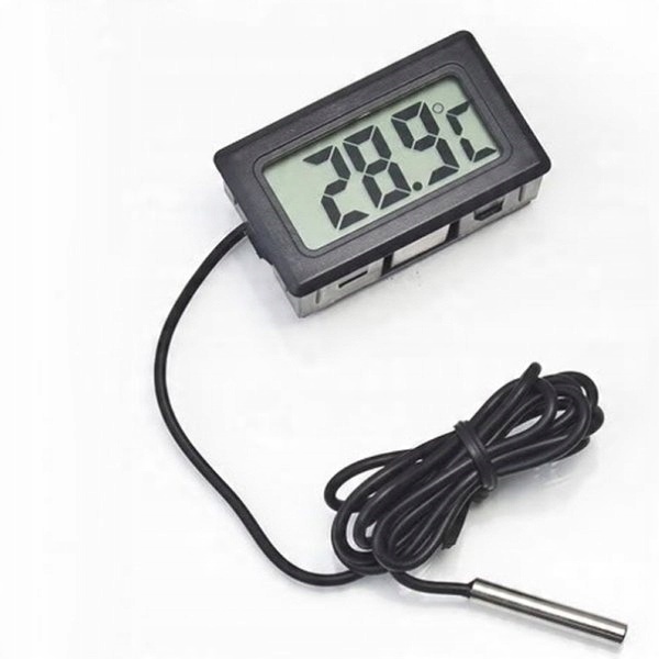 Электронный термометр с большим ЖК-дисплеем и щупом на длинном кабеле около 1 м. Термометр очень быстро показывает изменение температуры, достаточно положить его на открытую ладонь, и вы практически сразу увидите реакцию прибора.