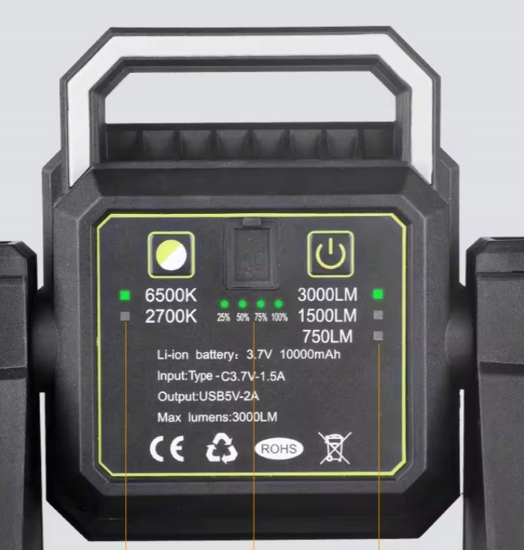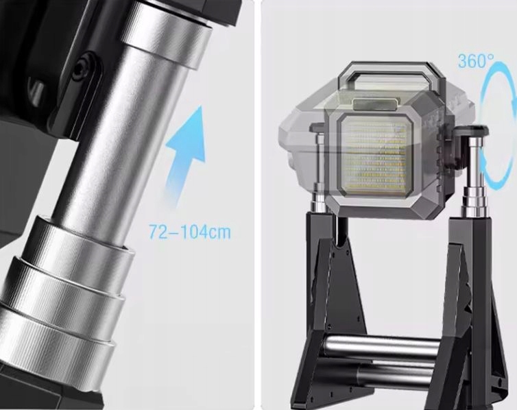 качественная светодиодная лампа Идеально подходит для работы на строительной площадке, в гараже или во время розничной торговли. Лампа генерирует сильный свет с яркостью 3000 люмен, обеспечивая отличное освещение даже в самых сложных условиях. Оснащен прочной батареей, позволяет долгое время использовать без необходимости подключения к источнику питания. Набор также включает в себя стабильный телескопический штатив, который позволяет легко устанавливать лампу в любом месте.