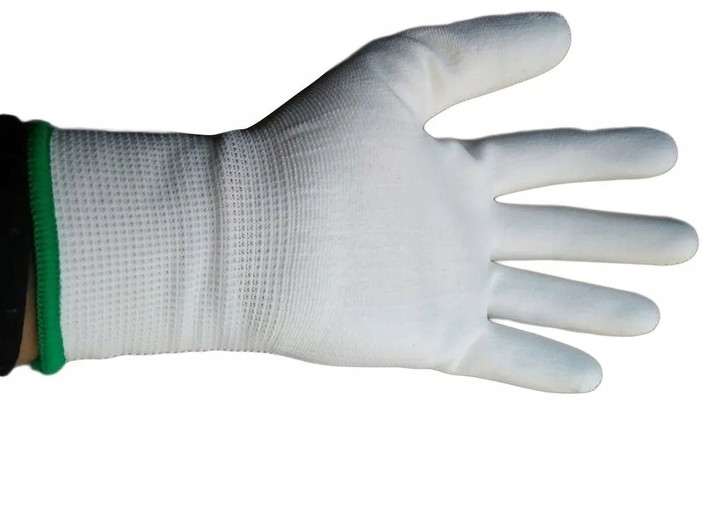 Перчатки рабочие защитные из белого полиэфирного трикотажа с покрытием из белого полиуретана, бесшовные, с отделкой манжетой ARHEM PU-WHITE - 10 PAR