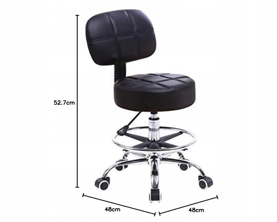 Толстая 10-сантиметровая подушка с диаметром 36 см из высококачественной кожи ПУ гарантирует комфорт даже при более длительном сиде. Он поддерживает вес до 135 кг, а прочная конструкция и прочные колеса делают его устойчивым к повседневному использованию.