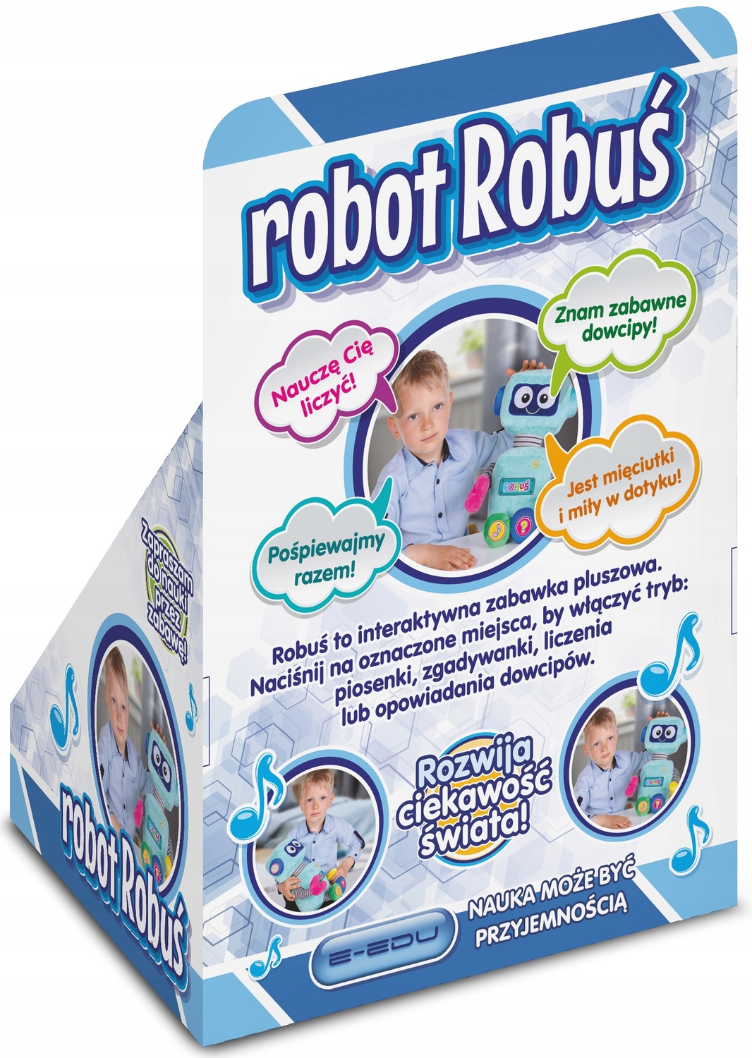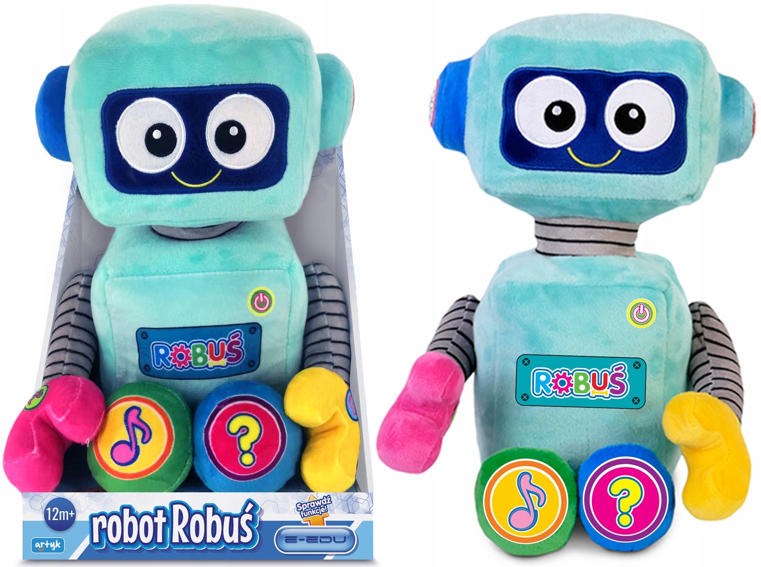 Обучение может быть удовольствием! После нажатия одной из четырех кнопок, Робуш будет петь, рассказал стихи, рассказал смешные шутки или спросил головоломки о пространстве . Медленно, объединяет функцию приятного и рассказчика . Большой и приятный талисман, сделанный из самого высокого качества материалов , безопасных для детей. Ваш ребенок будет любить его и не будет представлять, что играет без него. Как приятно обниматься в нем! Он заснул, рассказывая стихи, он станет компаньоном дома и в путешествиях и даст чувство безопасности. Идеальный друг для вашего ребенка!