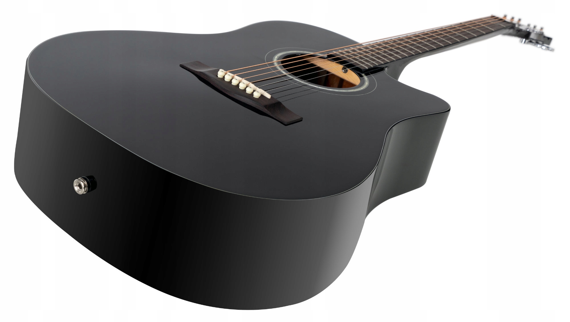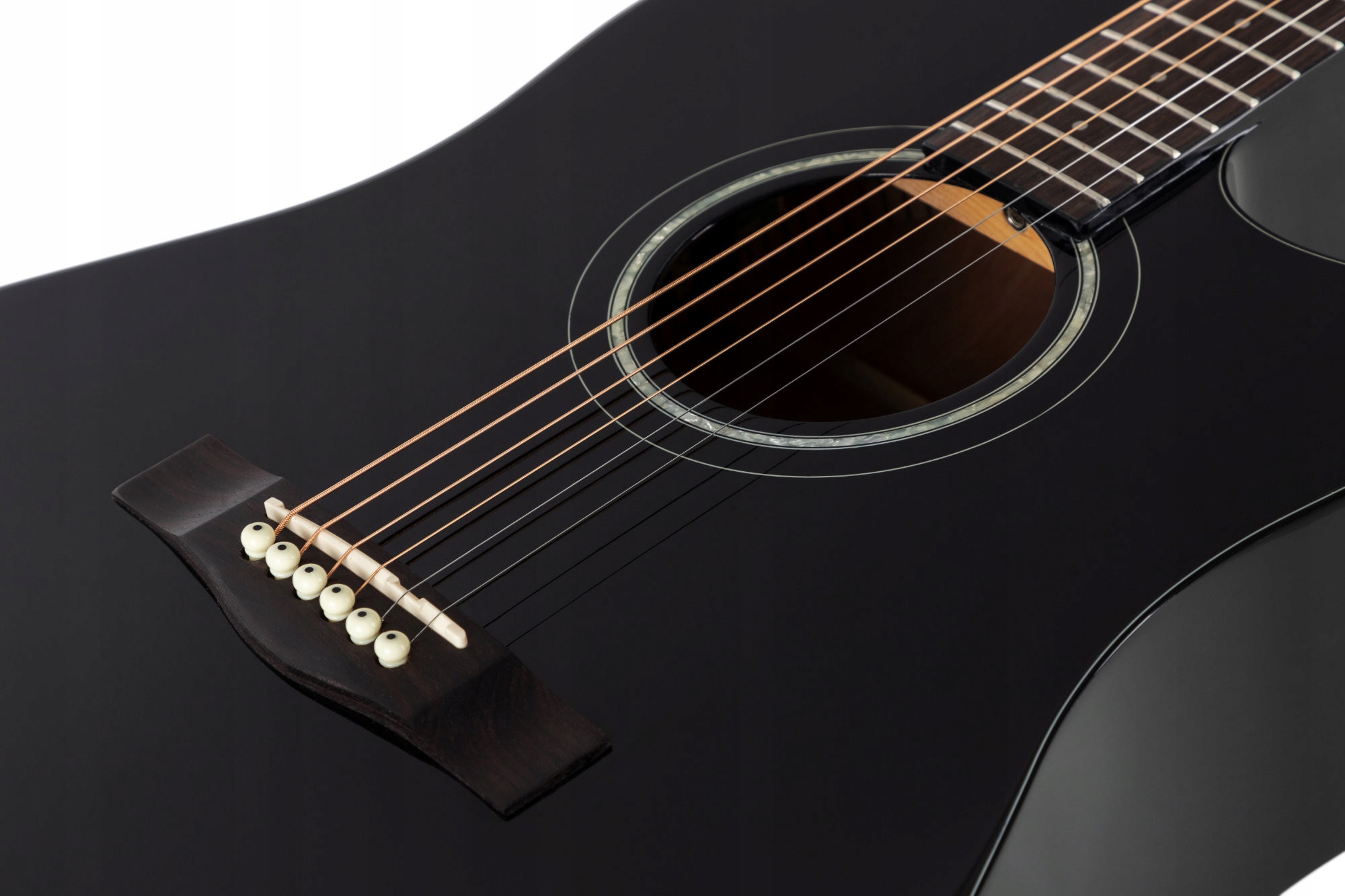 Гитара имеет многослойную переднюю пластину ели, LUBA, а задняя тарелка изготовлены из ламинированного красного дерева. D-60 выглядит отлично звучит, но также и оптически благодаря очень блестящему черному покрытию. В дополнение к высококачественным материалам, D-60 оснащен высококачественными струнами D'Addario, которые обеспечивают лишний звук! Благодаря созданному конвертеру, вы также можете играть через музыкальную камеру, и благодаря встроенному консилеру вы всегда будете звучать великолепно. Кроме того, гитара имеет интегрированный головной убор.