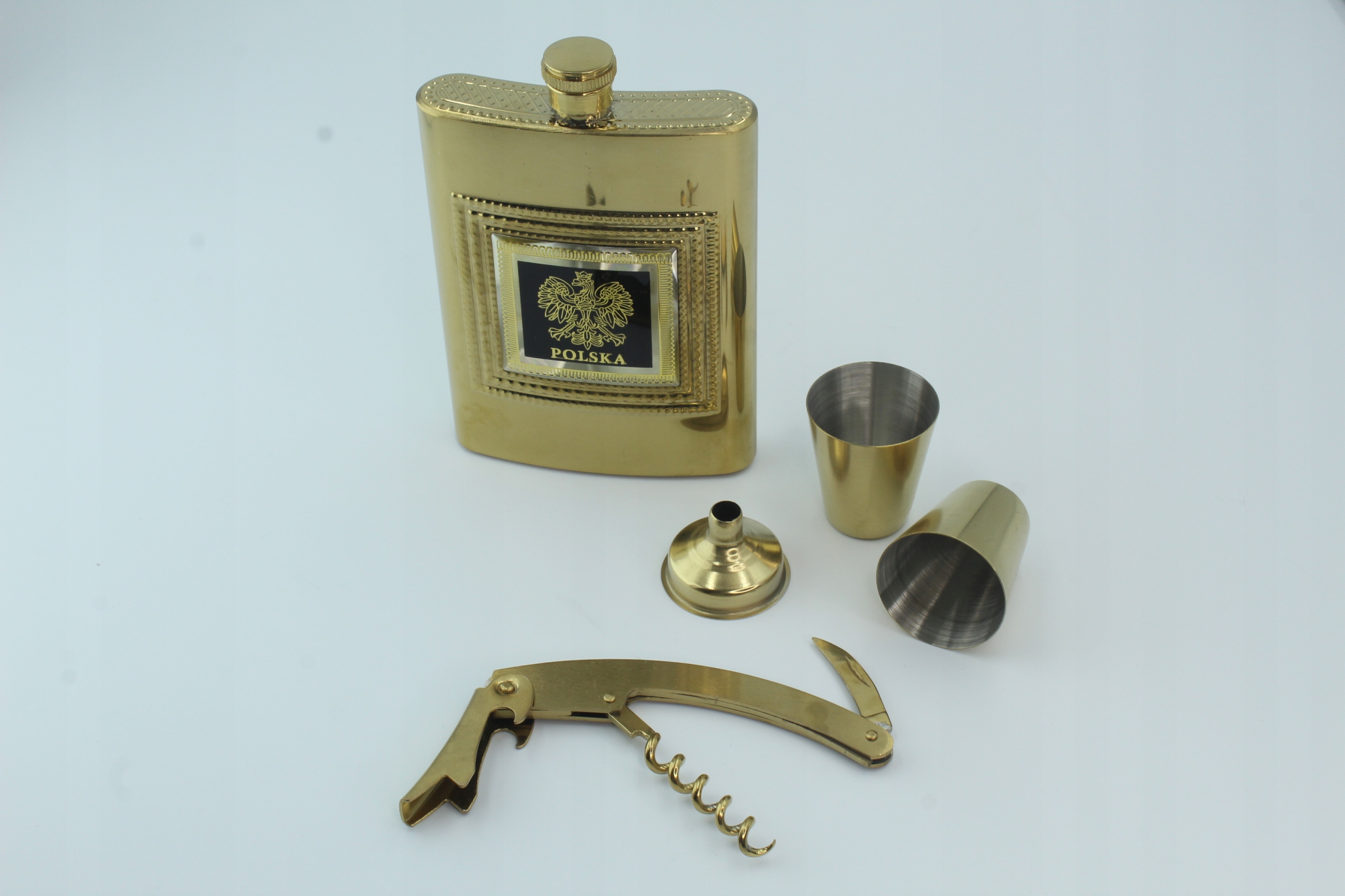 - ОБЪЕМ 200 МЛ НА БЕДРА С ОРЛОМ НА ЧЁРНОМ ФОНЕ С НАПИСЬЮ: ПОЛЬША