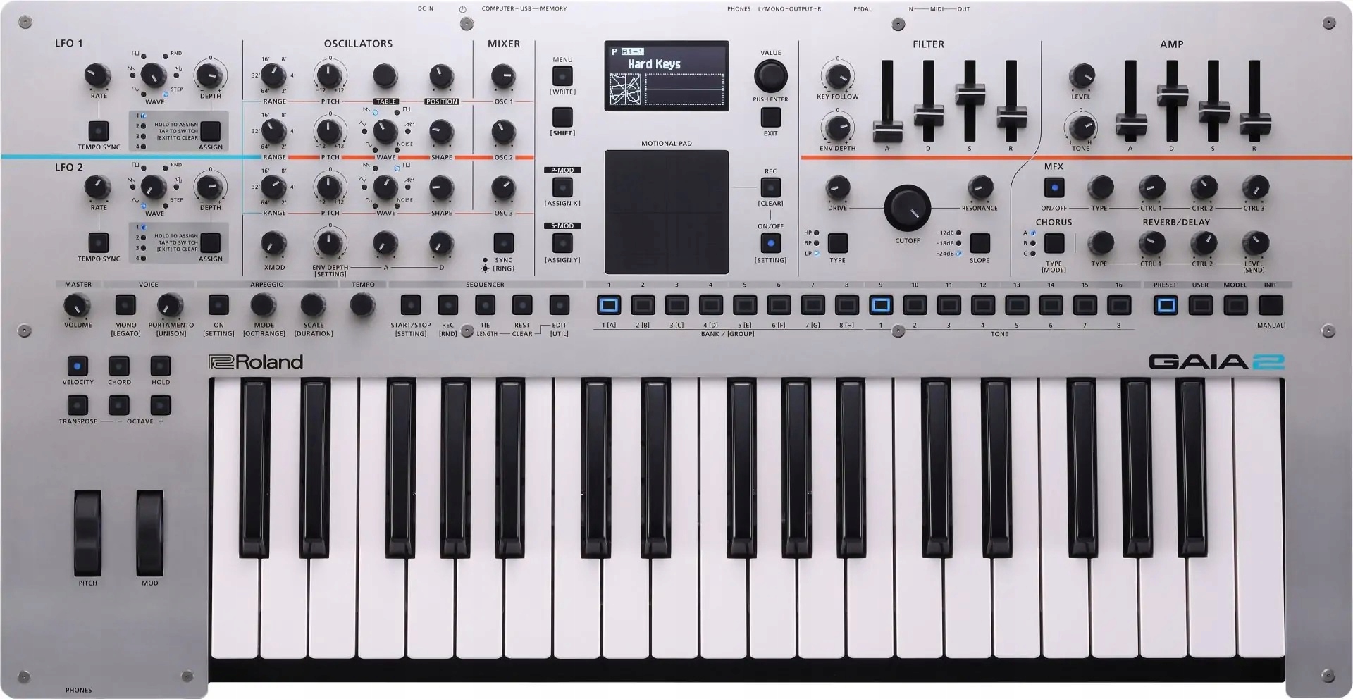 ROLAND GAIA 2 — цифровой синтезатор с расширенными звуковыми возможностями и множеством опций синтеза. GAIA2 следует за бестселлером полисинтетического синтезатора GAIA и продолжает практическую концепцию с помощью ZEN Core Engine с волновым табличным синтезом и виртуальным аналоговым синтезом.