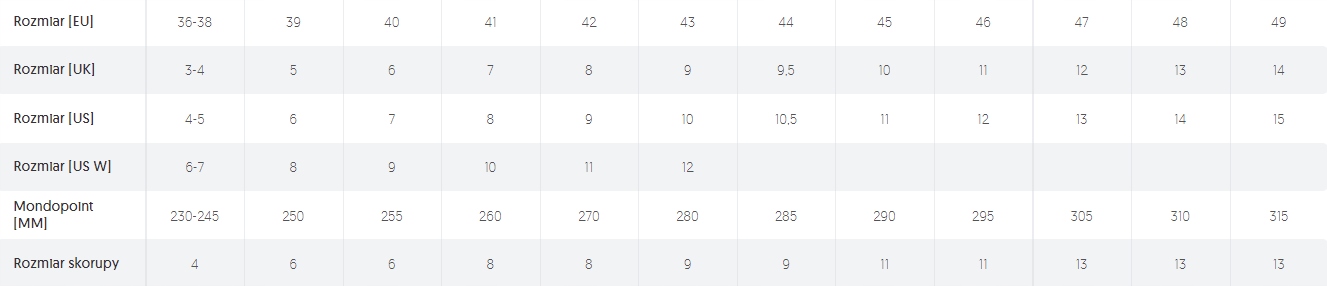 - Чтобы выбрать размер, следуйте за таблицей ниже размера таблицы