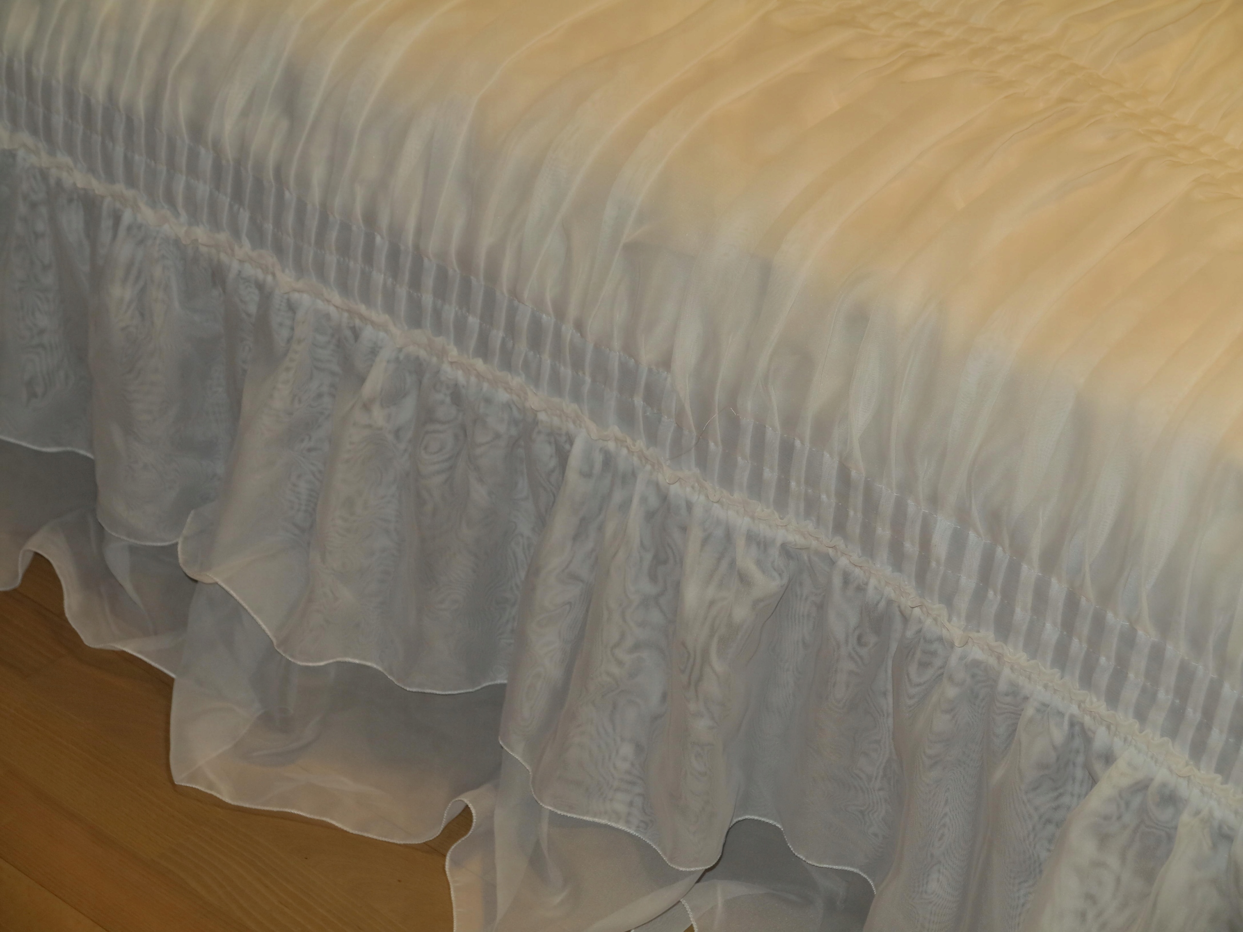 Романтическое и очаровательное декоративное драпированное покрывало, с двух сторон двойное обочивание