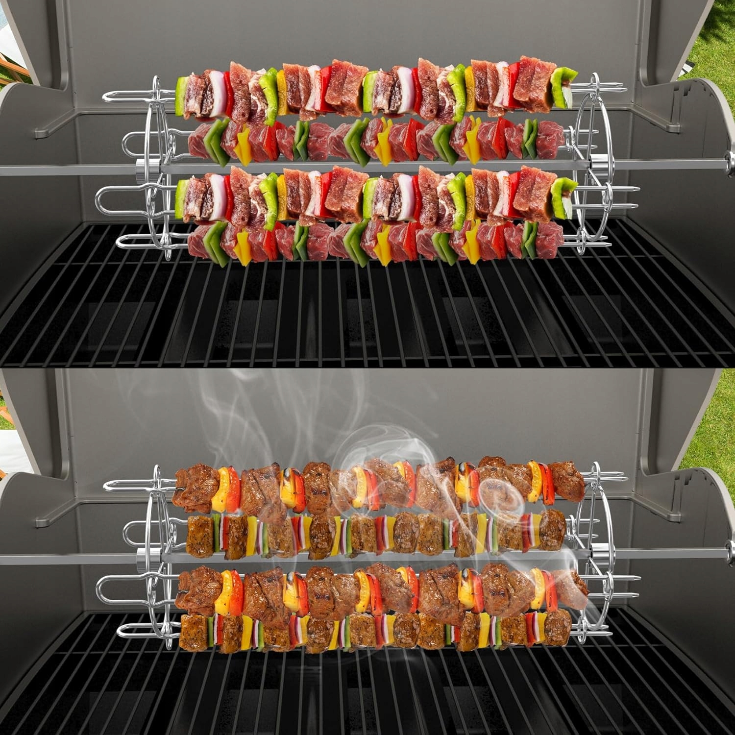 Предоставьте блюда на гриле незабываемый вкус и отличную консистенцию b> благодаря нашему набору за угол! Оснащенный инновационным вращающимся механизмом , позволяет равномерно выпекать любой кусок мяса и овощей, что делает их сочными и ароматными!