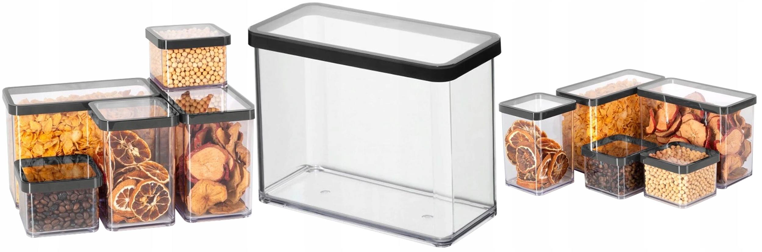 В контейнере будут храниться все сыпучие продукты, такие как соль, сахар, сухие завтраки, мука, крупы, рис, конфеты и т. д.