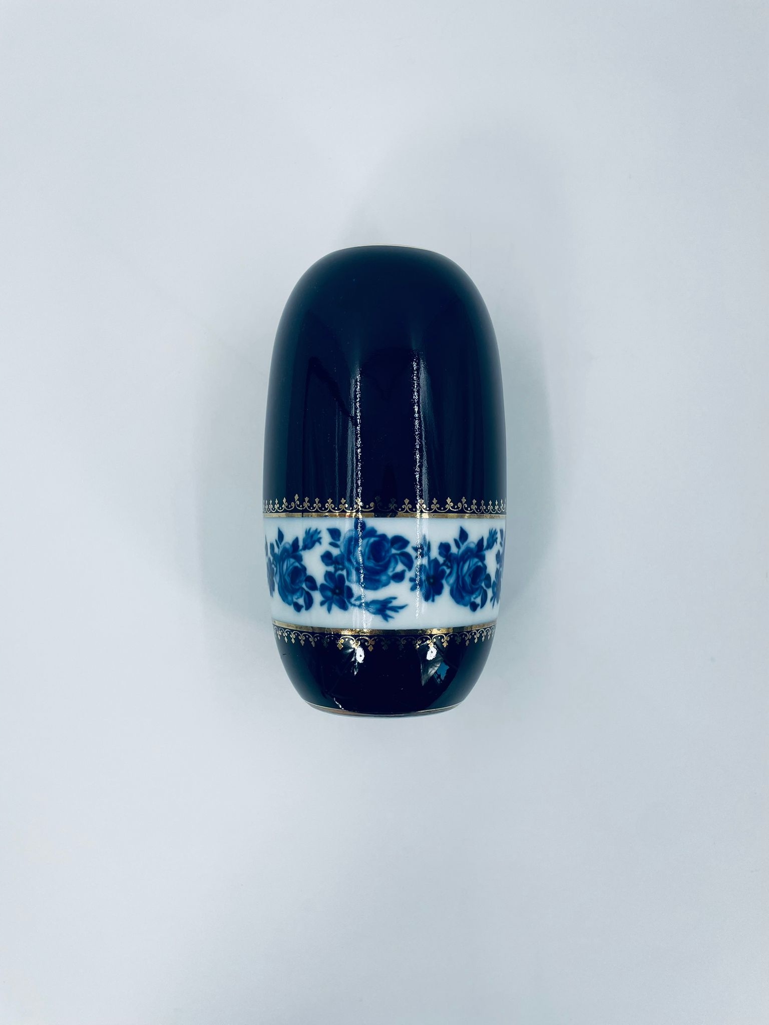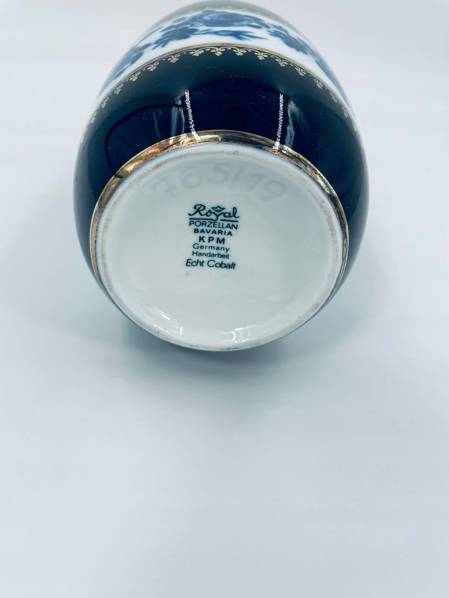 Королевская бавария ваза, кобальт, изготовленная из высококачественного фарфора, ручной рисунки с золотыми акцентами. Ваза имеет тонкую трещину.