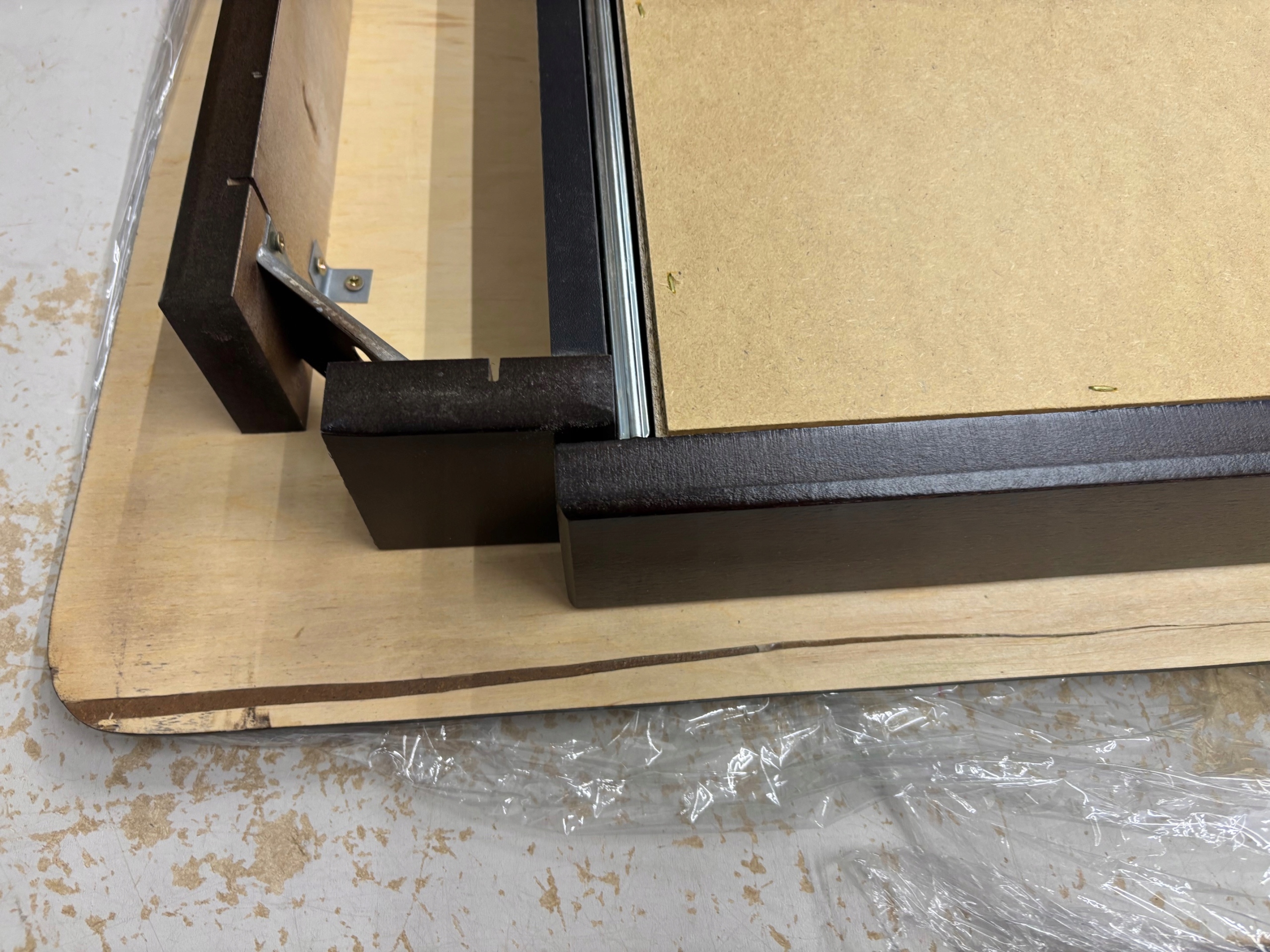 Outlet - кусок шпона откидывает под столешницу. Дефект не виден во время использования (последние две фотографии в галерее продуктов)
