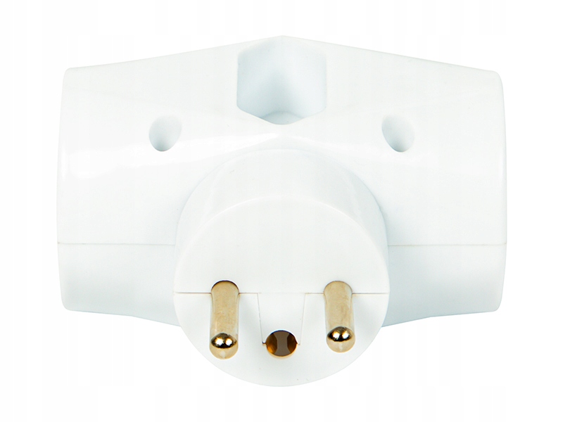 Очень функциональный разветвитель с двумя розетками с заземлением и одной плоской розеткой. Чрезвычайно полезно, когда имеется мало доступных сетевых сокетов.