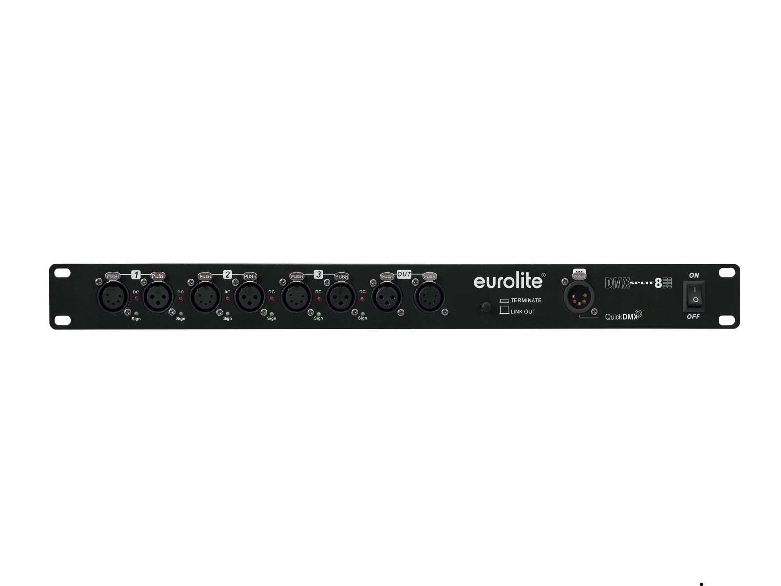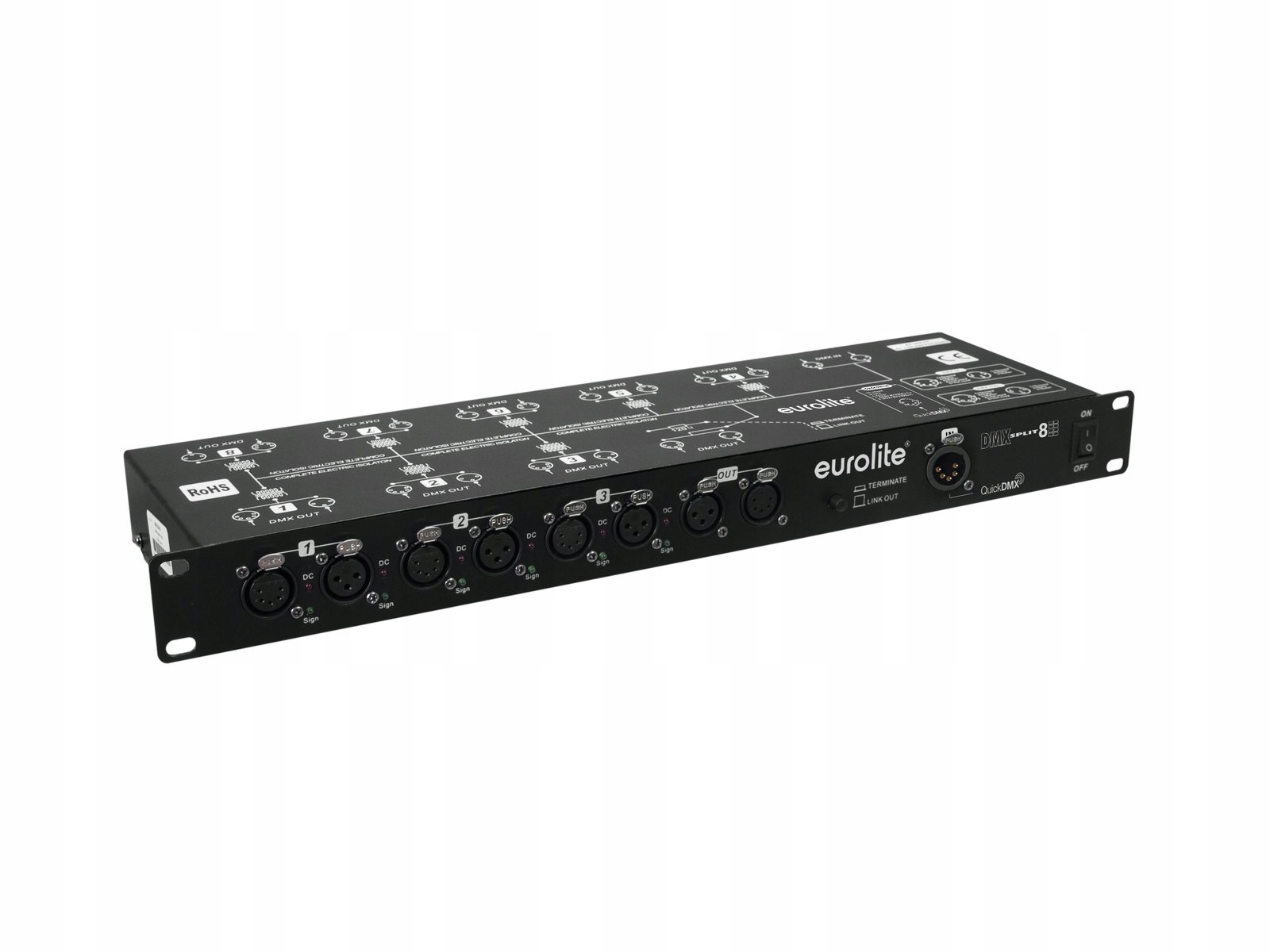 8-канальный разветвитель DMX (разделяет один входной сигнал DMX на 8 выходов DMX) с гальванически развязанными входами.