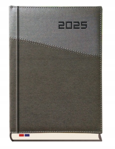 формат: B5 (165 x 235 мм) Макет календаря: 1 день - 1 страница + дополнительные страницы после конца месяца количество страниц: 384 печать: 2 цвета Тип бумаги: офсетная 70 г/м2 кремовая Переплет - комбинированная искусственная кожа, выкройная двухпроходная регистра, две ленты, уголки перфорированные