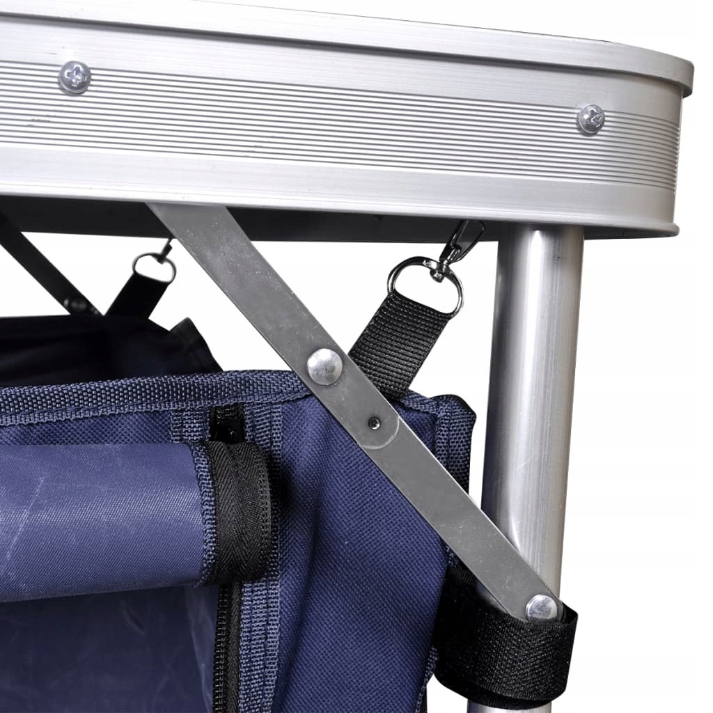 Складной походный шкаф отличается широкой столешницей и двумя отделениями для хранения вещей. Он идеально подходит для использования на открытом воздухе.