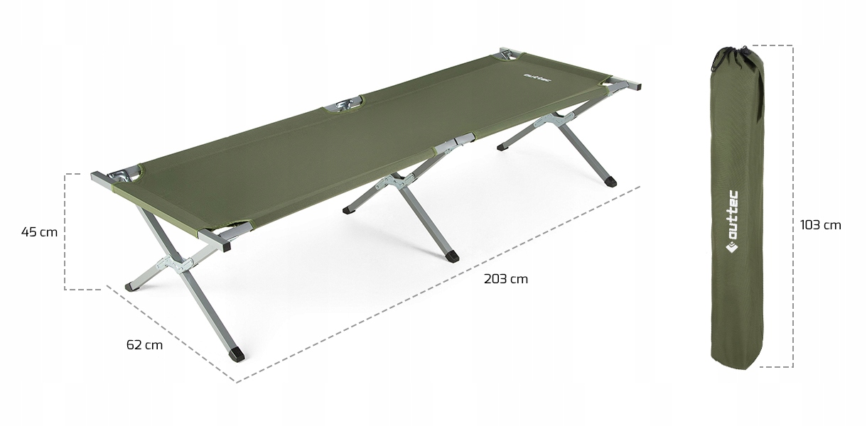 Раскладная кровать Outtec Canadian — идеальный вариант для людей, которые любят отдыхать на лоне природы. Легкая и прочная конструкция обеспечивает не только комфорт, но и безопасность во время сна на открытом воздухе. Быстро сложив и разложив кровать, вы сэкономите массу времени на обустройстве лагеря. Противоскользящие ножки гарантируют устойчивость, а легкая в уходе ткань облегчает поддержание чистоты. Для детей и взрослых кровать будет полезна в любой ситуации. В сложенном виде занимает мало места, а чехол облегчает транспортировку. Раскладная кровать Canadian Outtec – ваша гарантия спокойного и комфортного сна на лоне природы.