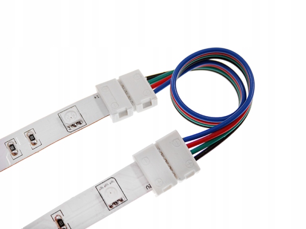 Коннектор-защелка для светодиодной ленты RGB шириной 10 мм, двусторонний, с кабелем длиной около 15 см.