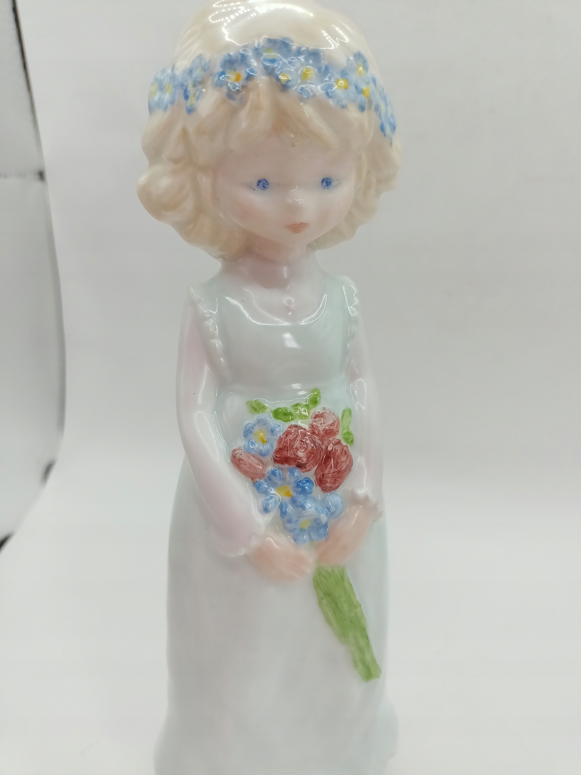 Розписана вручну фігурка дівчини з вінком і квітами