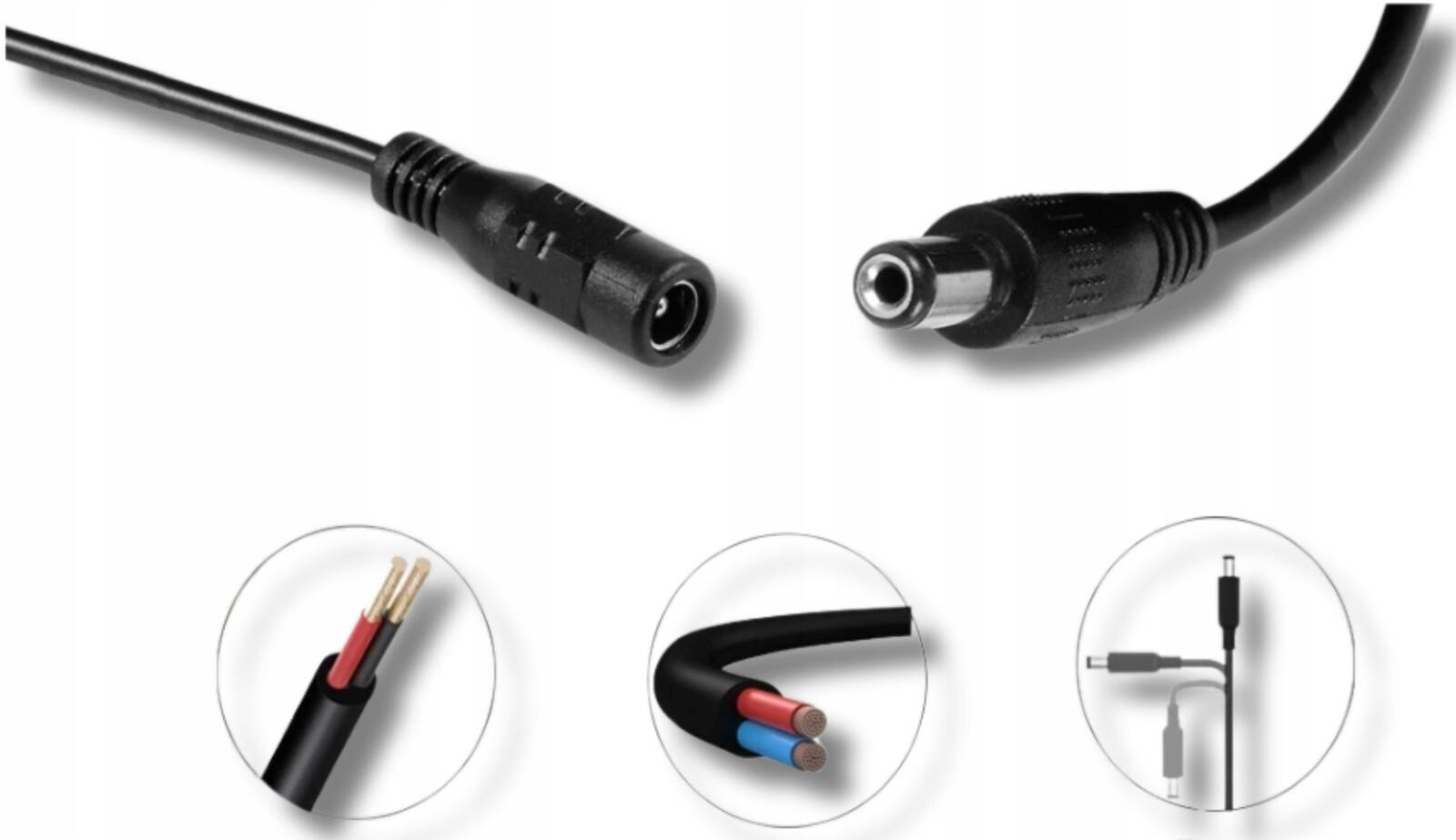 5 -метровое расширение мощности является идеальным решением для людей, которые ищут удобный и надежный способ расширить диапазон электронных устройств. Благодаря универсальным разъемам 2.1/5,5 мм и сплошной конструкции, кабель широко используется при подаче камер мониторинга, светодиодных ламп, маршрутизаторов, панелей, рекордеров или других электронных устройств, требующих стабильного подключения к мощности