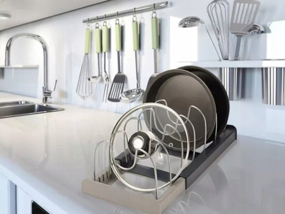 Органайзер позволит вам организовать различные кухонные принадлежности, такие как: крышки кастрюль, сковороды, кастрюли, разделочные доски, противни и т. д.