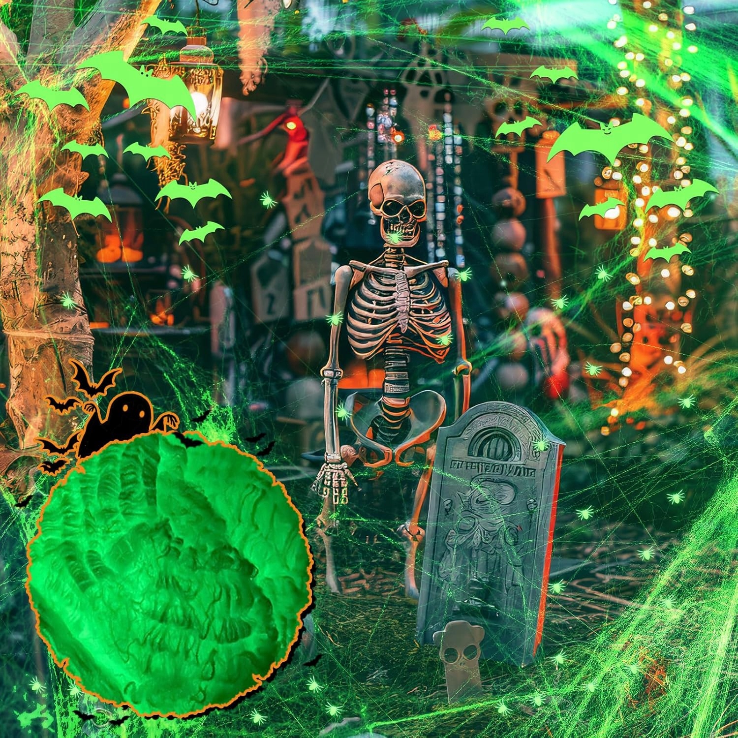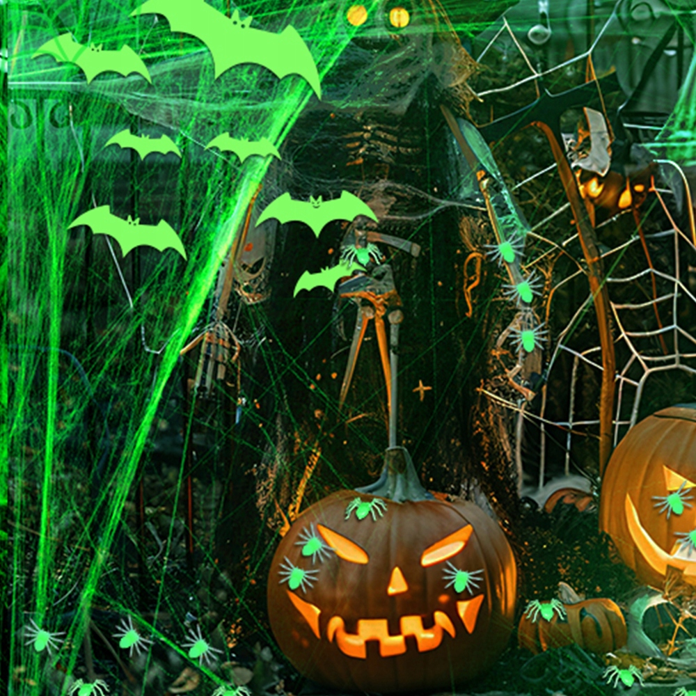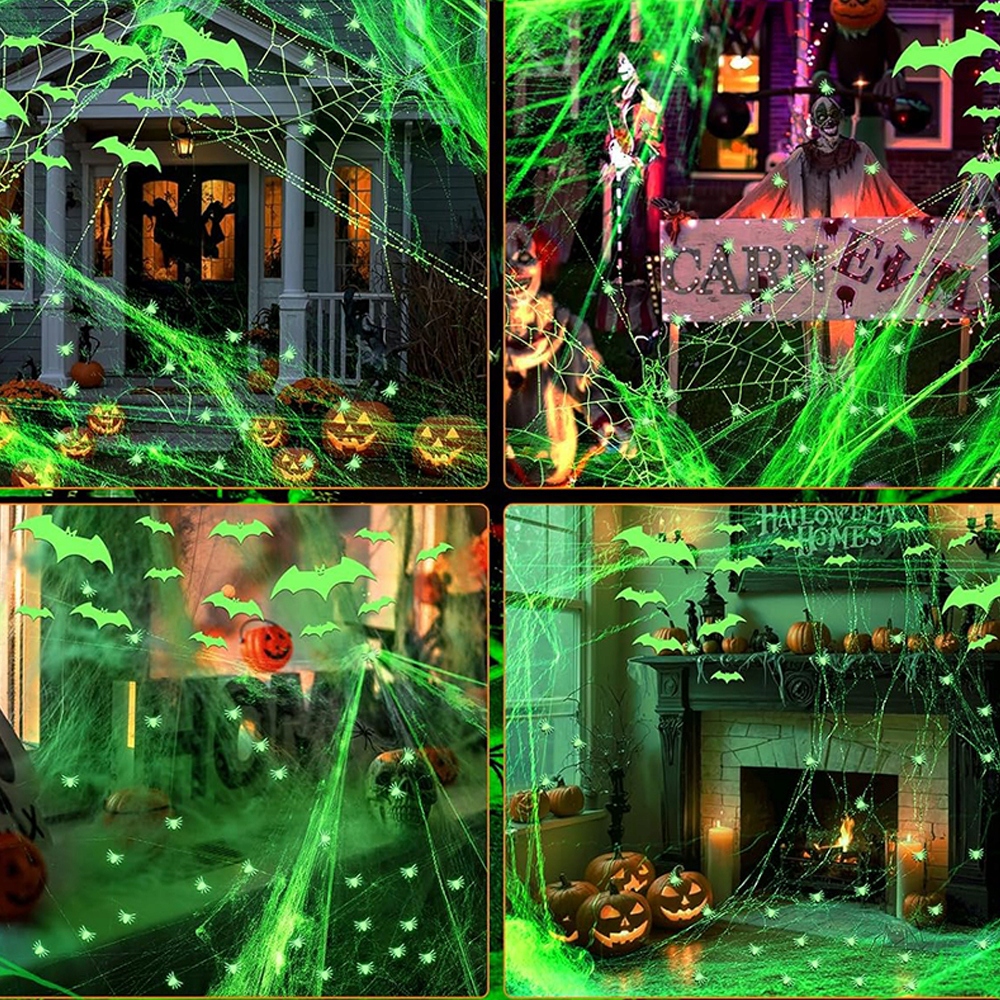 🕸 Halloween Spider Web Decorations, Super Street Spider Web с 30 фальшивыми пауками и светящимися битми.