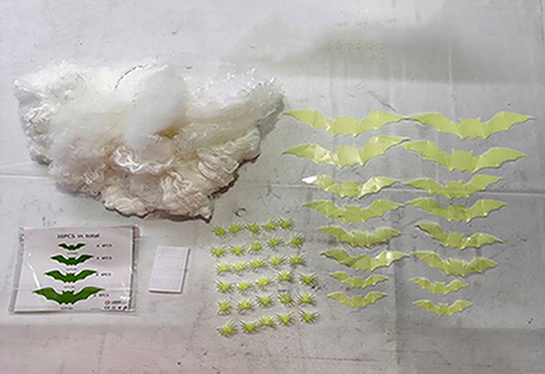 🕷 pajęcza Сеть изготовлена из высококачественного полиэстера, пластикового паука и летучих мышь на ПЭТ, которые можно многоразовать.