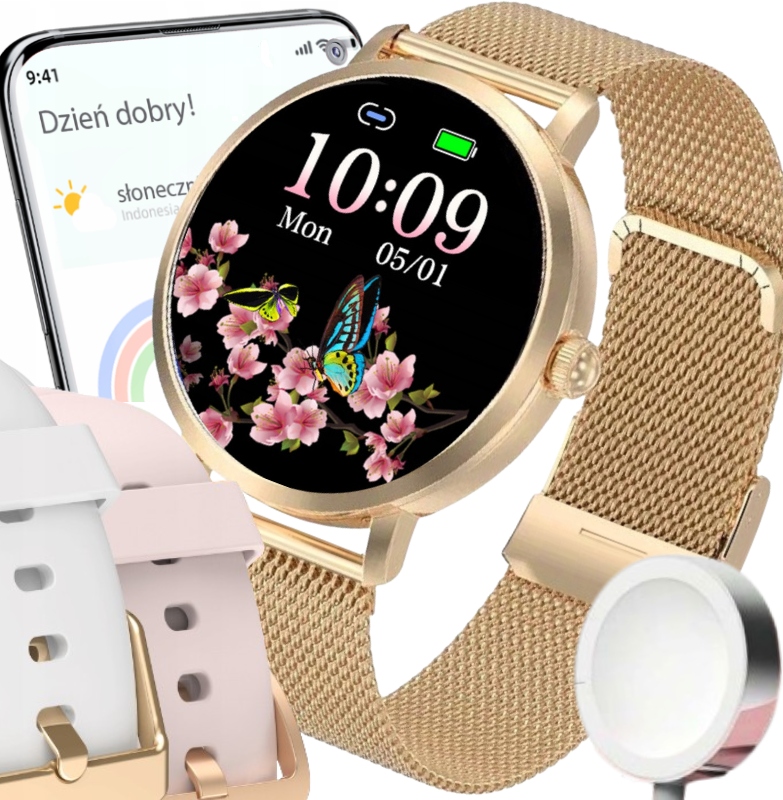 РОЗУМНИЙ ГОДИННИК ЖІНОЧИЙ ГОДИННИК TALKS AMOLED ПОЛЬСЬКЕ МЕНЮ РОЗУМНИЙ ГОДИННИК + 3 РЕМІНЦІ