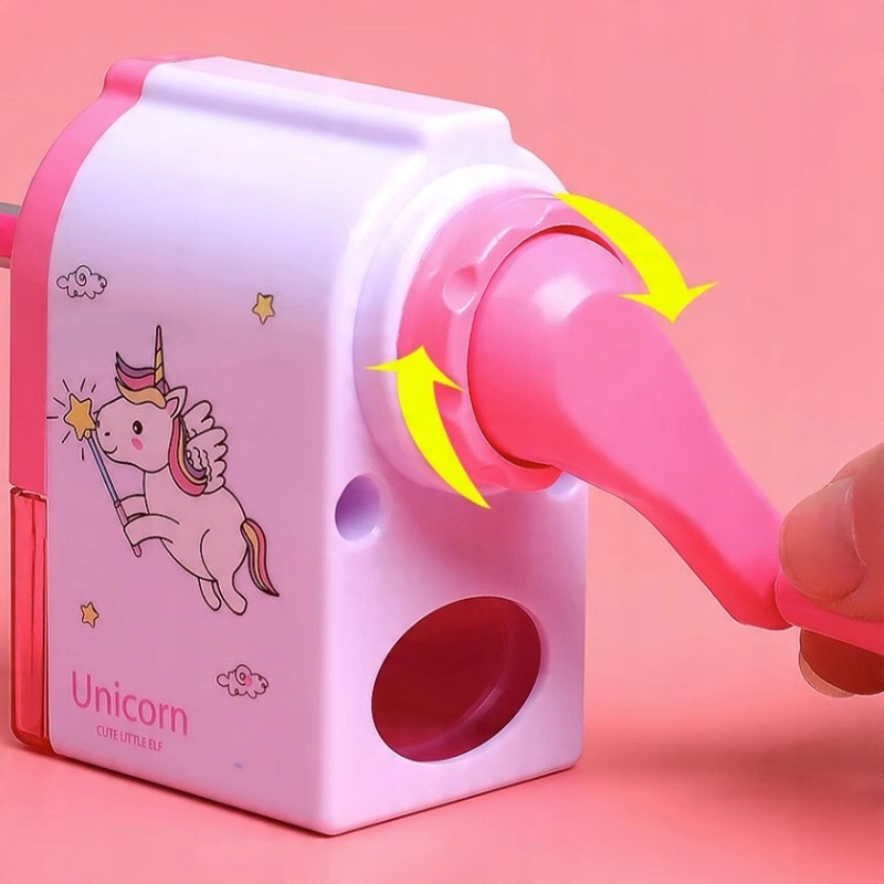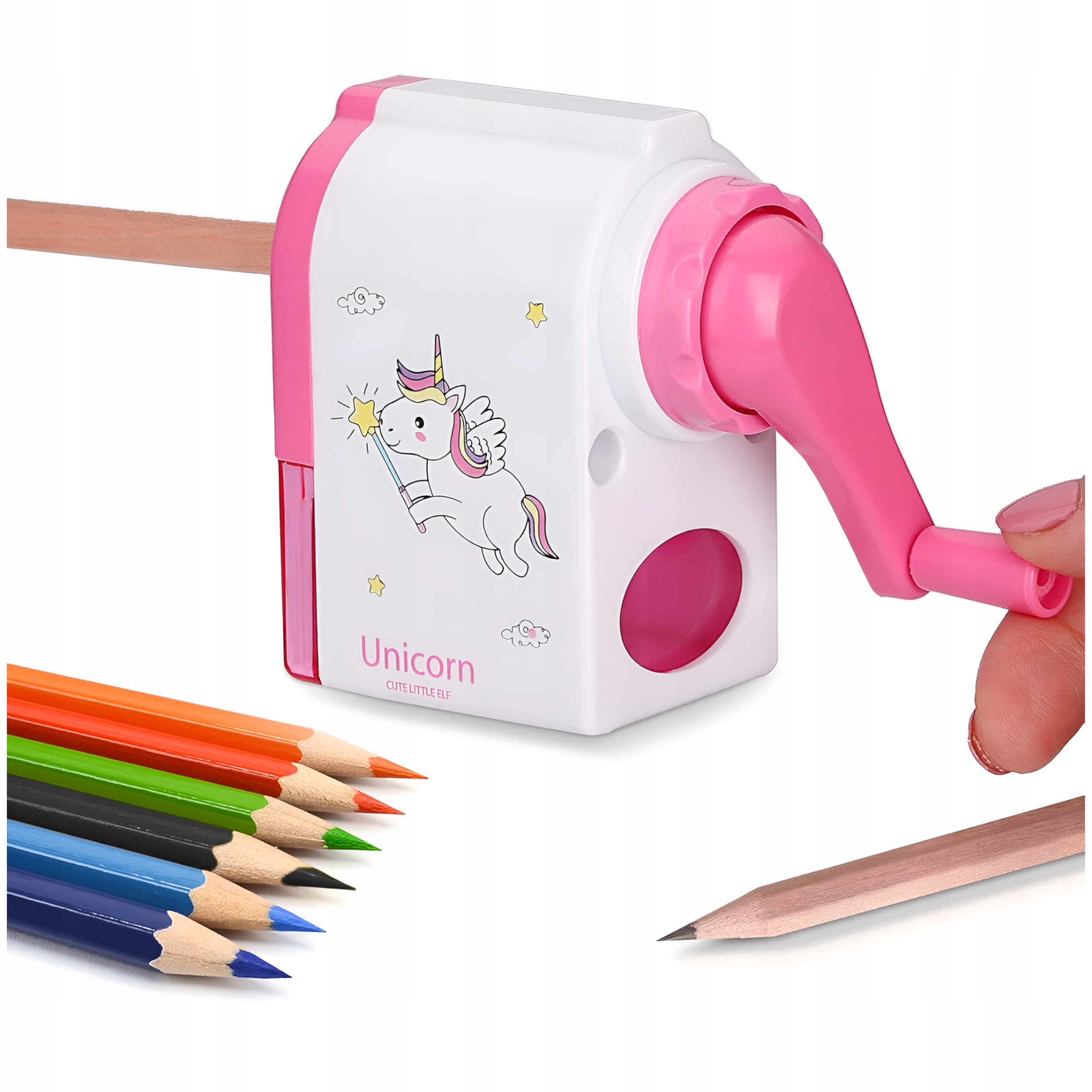 Розовая точилка для рубанка с рукояткой «единорог» — практичное устройство, идеально подходящее для детей. Оснащенный рукояткой, позволяет легко и быстро затачивать мелки и карандаши. Процесс удобен и требует минимальных усилий, что делает его особенно привлекательным для детей.