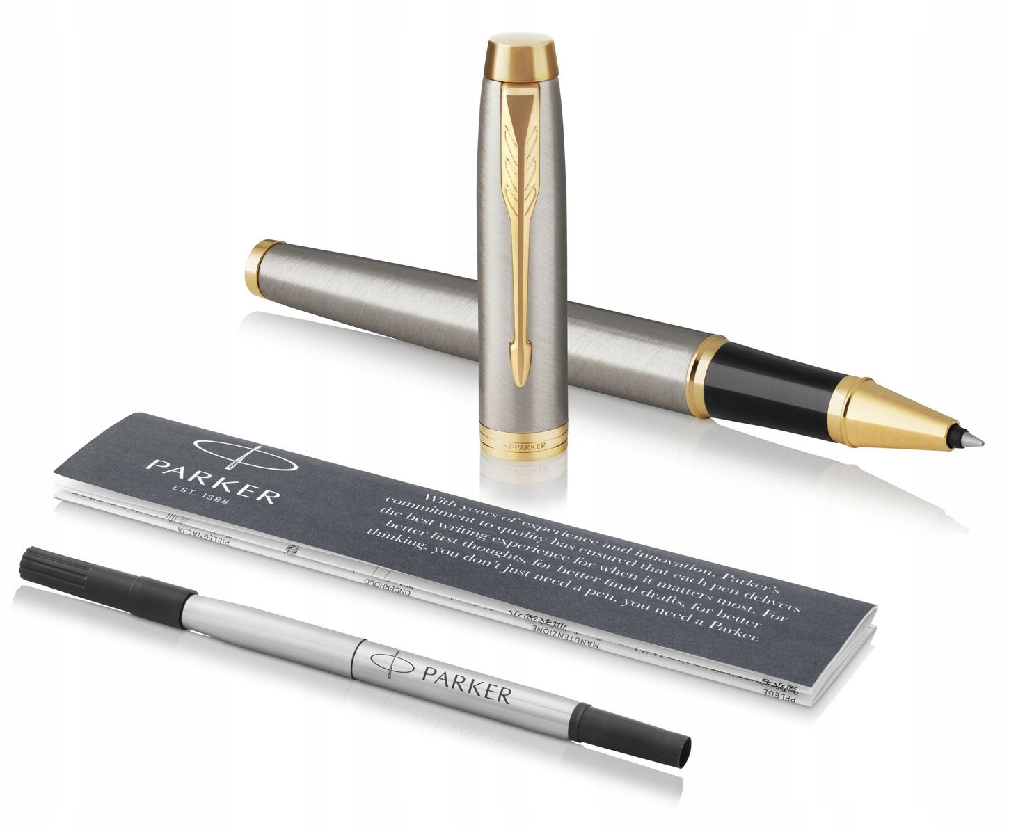 Элегантная, изысканная и профессиональная ручка-роллер PARKER IM — идеальный партнер с неограниченным потенциалом. Обтекаемая форма органично сочетается с инновационным дизайном в привлекательной композиции. Матовый металл с поперечным разрезом и золотой отделкой сделают его подарком, который запомнится надолго. Сверхгладкий кончик шариковой ручки обеспечивает плавное письмо без перерывов и оставит неизгладимое впечатление, где бы вы ни писали. Для использования со стержнями для шариковых ручек QUINK. Каждая деталь была доработана, чтобы обеспечить надежность и соответствие более чем 130-летнему наследию бренда.