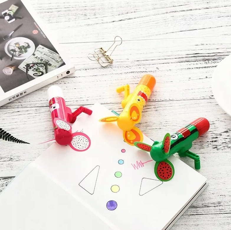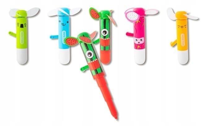 Разноцветные вертушки - ручки. Если вам слишком жарко, просто поверните рукоятку, и через мгновение вы почувствуете прохладный ветерок. Однако, если вам нужна ручка, просто откройте колпачок и разверните ручку. Ручка-вертушка доступна в нескольких цветах: арбуз, личи, оранжевый, салатовый, синий и фиолетовый. Помните, что имеет значение, в какую сторону вы поворачиваете вентилятор. Если вы не чувствуете прохладного воздуха, поверните рукоятку в другую сторону.