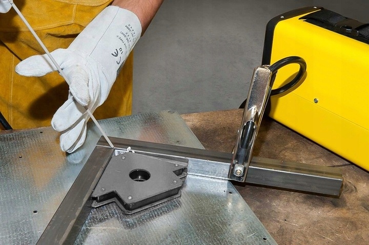 Магнитный уголок изготовлен из стального листа и сильных ферритовых магнитов. Позволяет точно соединять материалы под углами: 45°, 90° и 135°. Грузоподъемность магнита около 23 кг. Поверхность корпуса магнита покрыта порошковой краской. Предназначен для временного соединения металлических элементов при сварке, сверлении, покраске, работах, требующих использования обеих рук. Использование магнитного уголка позволяет свободно работать обеими руками и предварительно собирать соединяемые металлические элементы без помощи дополнительного человека.