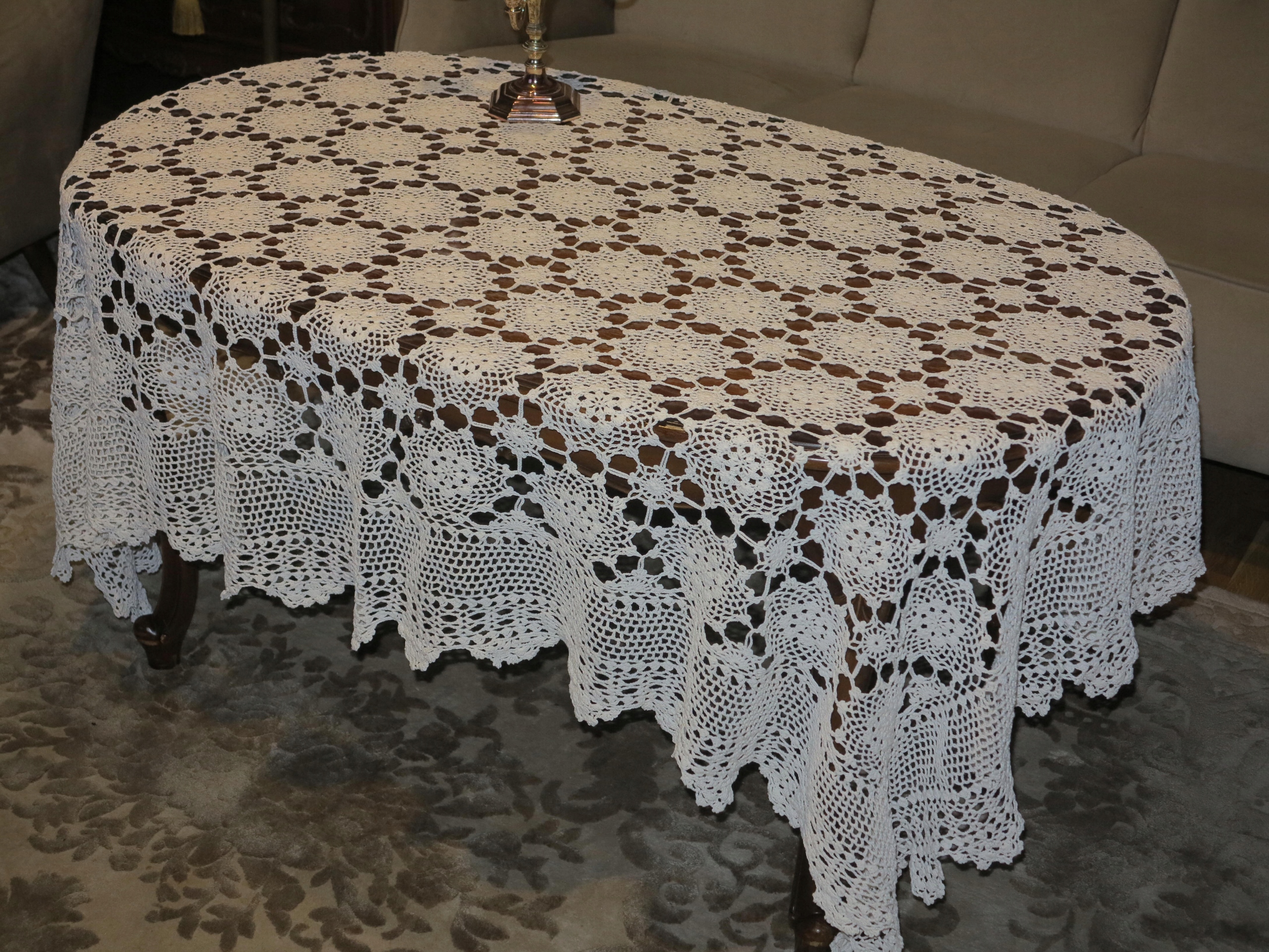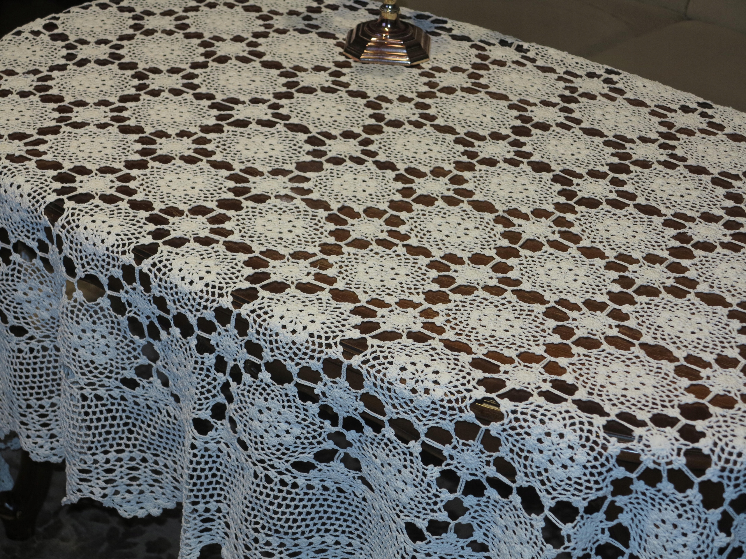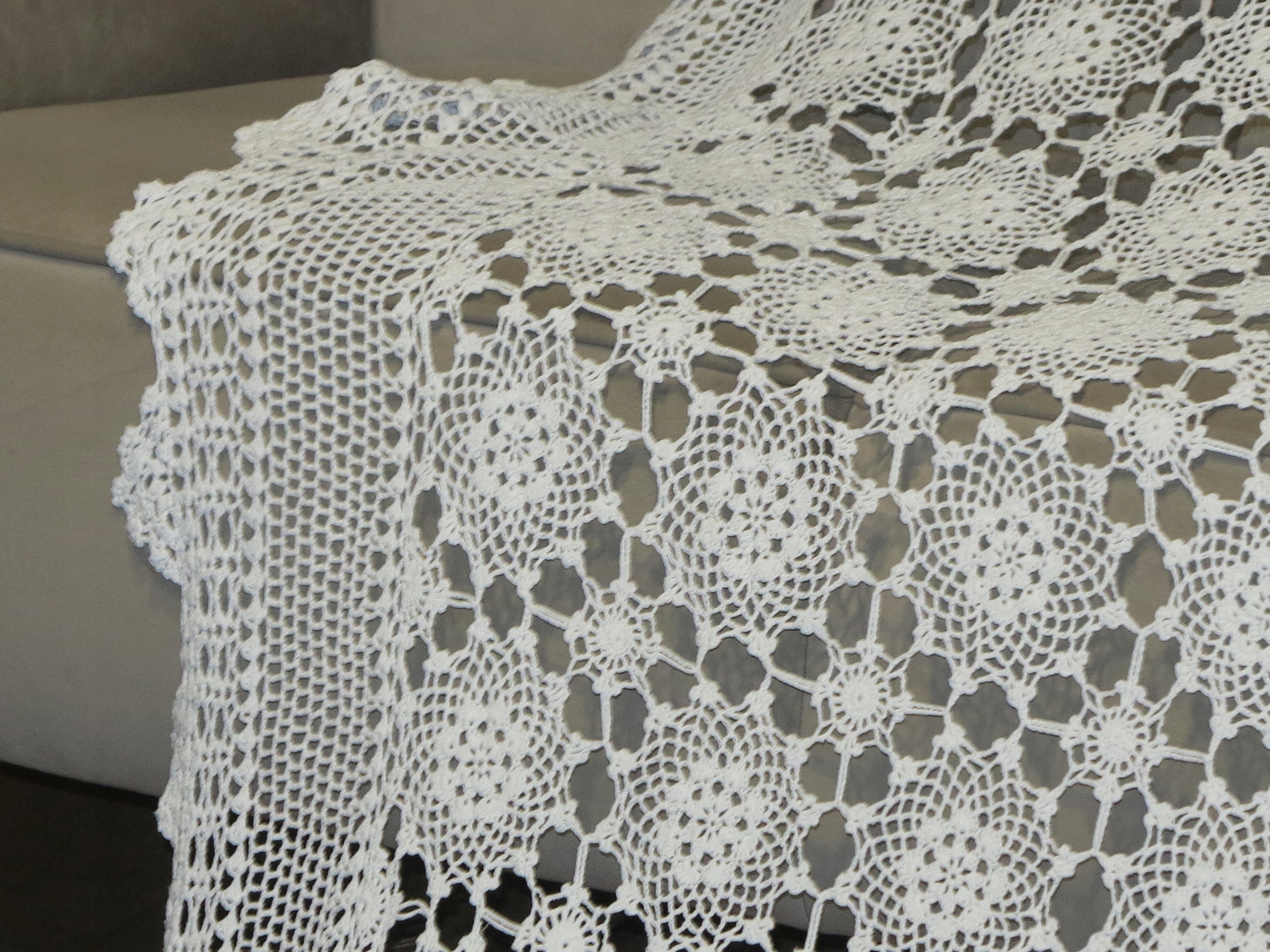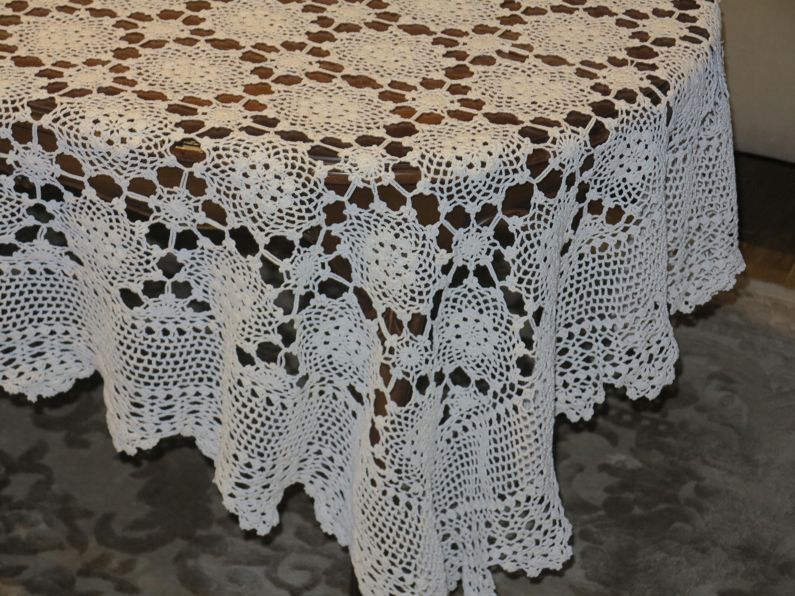 ОБРАЗЕЦ - НЕОБЫЧАЙНО КРАСИВАЯ, БЕЛОСНЕЖНАЯ СКАТЕРТЬ КОРКОН, ПОЛНОСТЬЮ РУЧНАЯ РАБОТА, ОТЛИЧНО ВЫПОЛНЕНА ИЗ ХЛОПКОВЫХ НИТОК НА ТОНКОМ ВЯЗАНИИ Крючком. БОЛЬШАЯ РОЗЕТКА