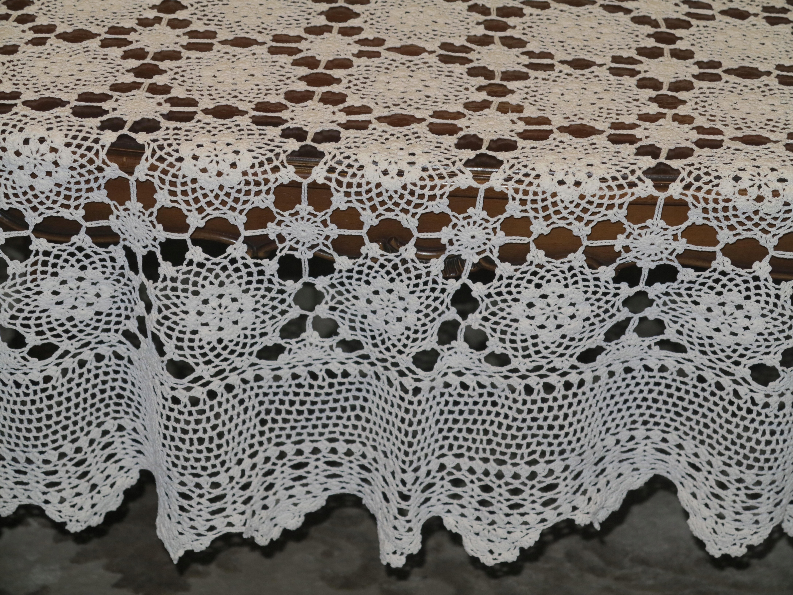 РУЧНА РЕДКА - УНІКАЛЬНА БІЛА СКАТЕРТИНА КОРКОН, РОЗЕТКИ 182/132