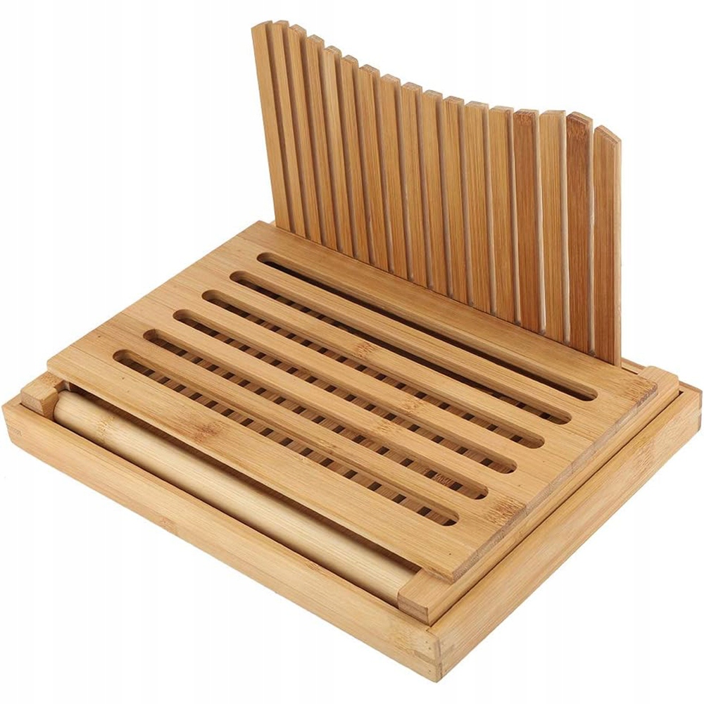 РУЧНА СКЛАДНА БАМБУКОВА ХЛІБОРІЗКА З ПІДНОШКОМ ДЛЯ КРИХТ
