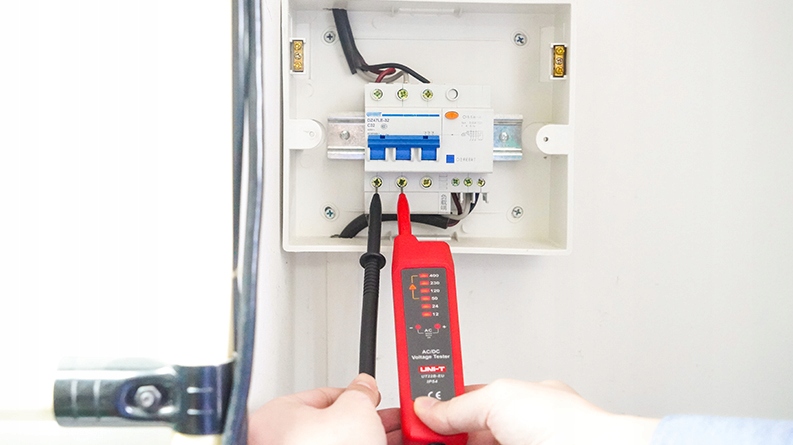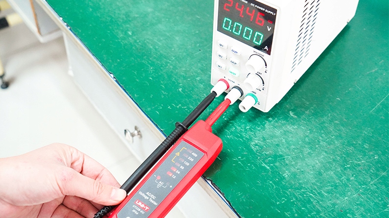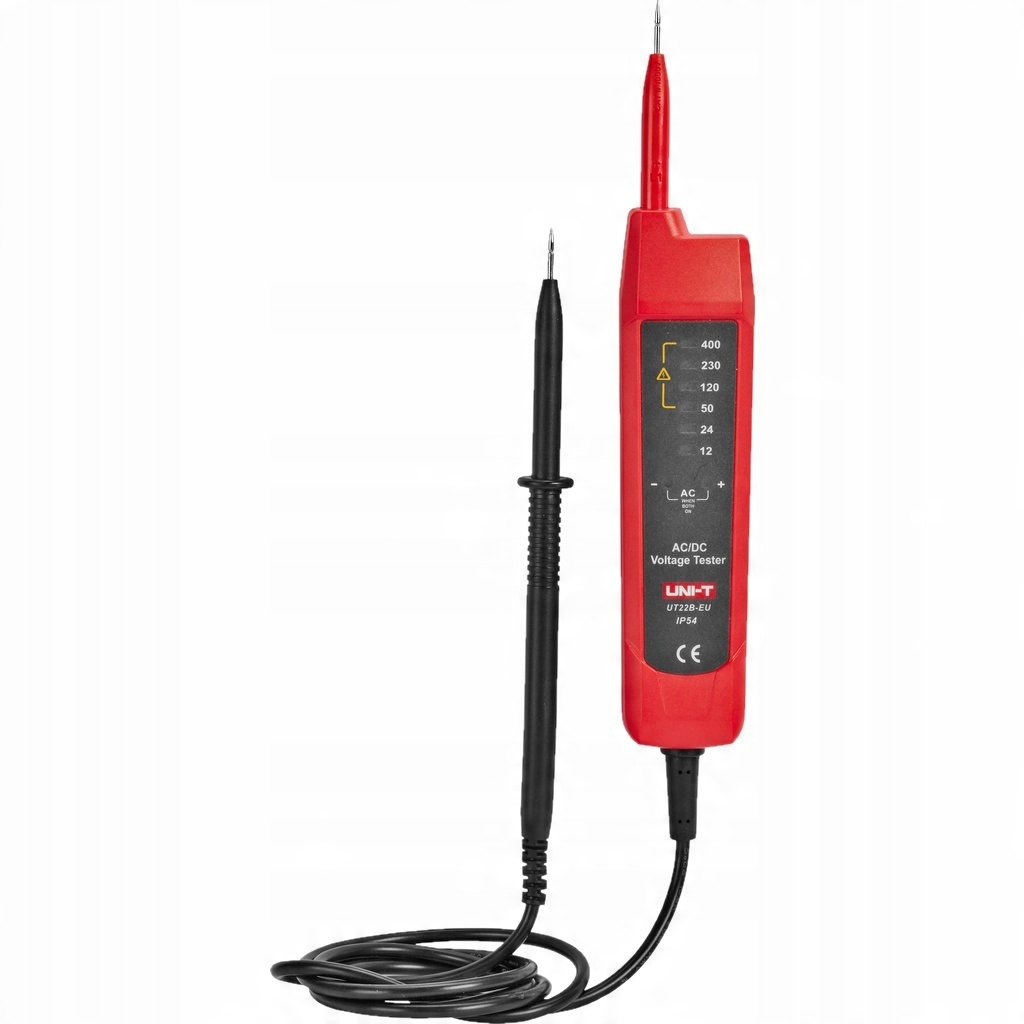 UT22B-EU-это простой тестер напряжения, который будет работать для повседневного использования, как дома, так и работы. Легко в использовании, предназначенная для измерения напряжения переменного тока/постоянного тока от 6 В до 400 В. Тестер имеет степень защиты IP54, защищающую устройство от воды и пыли. Кроме того, индикатор устойчив к падению с высоты до 2 метров. Дополнительным преимуществом устройства является то, что оно не требует дополнительного источника питания в виде батареи. Его источник питания - это напряжение, измеренное в цепи. Индикатор диода сообщает о диапазоне измерений, расположенное измеренное напряжение. Пользователь также получает информацию о том, является ли напряжение постоянным постоянным DC (The + или -) или переменным AC сияет (сияет одновременно + и -). Для точности указания уровня напряжения, соответствующий светодиод, который обычно сияет ярче примерно на 70% до 100% от определенного диапазона, за исключением 12 В переменного тока/постоянного тока, где он загорается от 50% до 100% от значения напряжения. Устройство соответствует стандартам: EN61326-1: 2013, EN61326-2: 2013, EN61243-3: 2014.