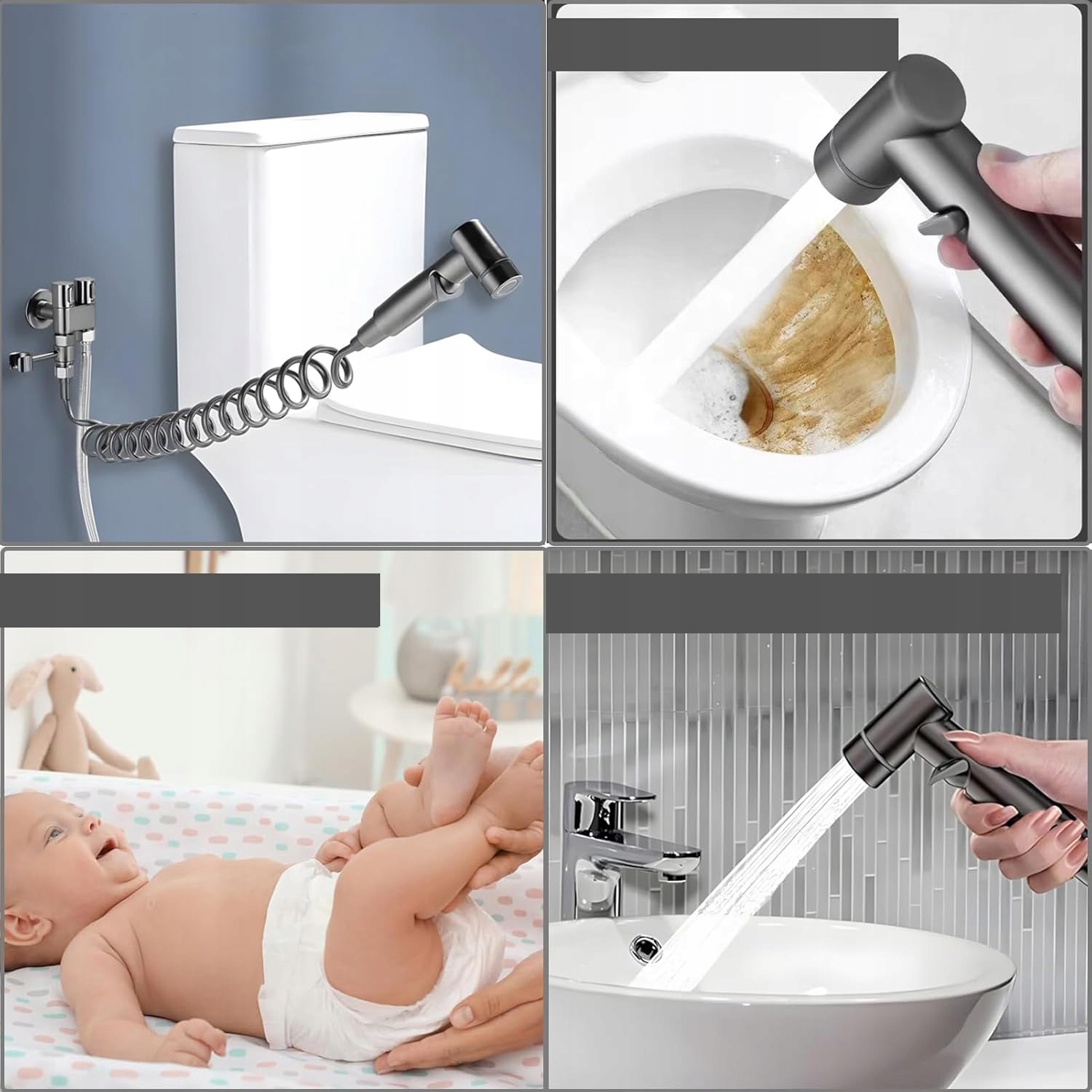 ➡ Очистка: Биде для душевой головки для туалета является незаменимым элементом вашей ванной комнаты. После складывания он компактный и не течет на пол. Легко чистить. Утолщенная пружинная труба высокого диаметра обеспечивает плавный поток воды.